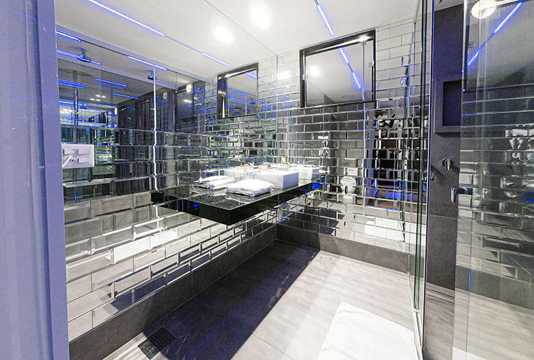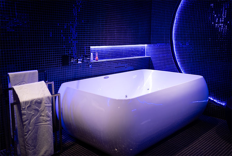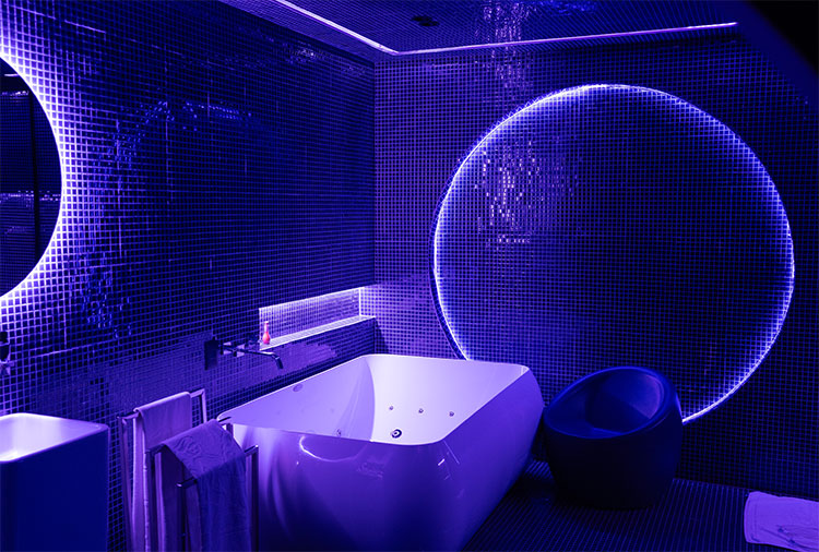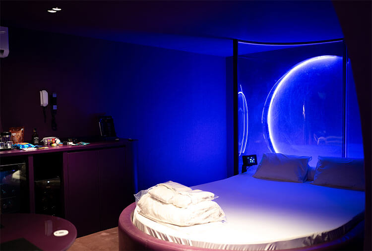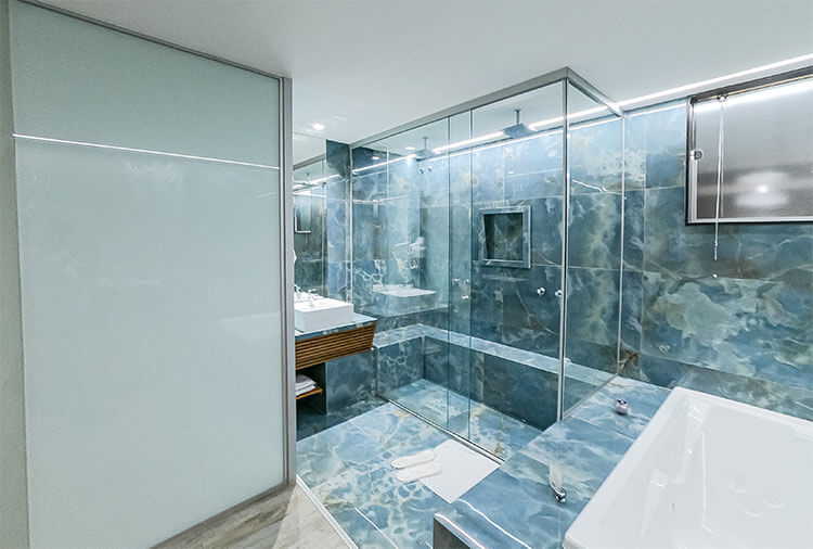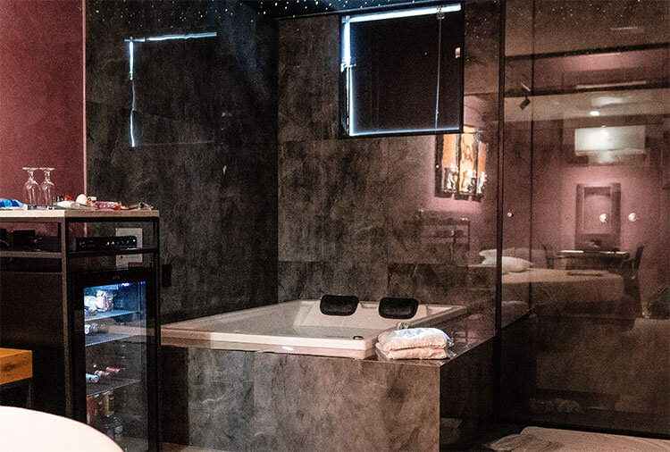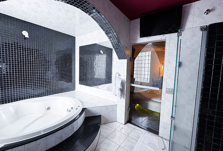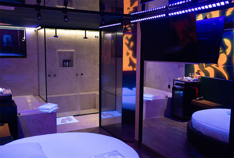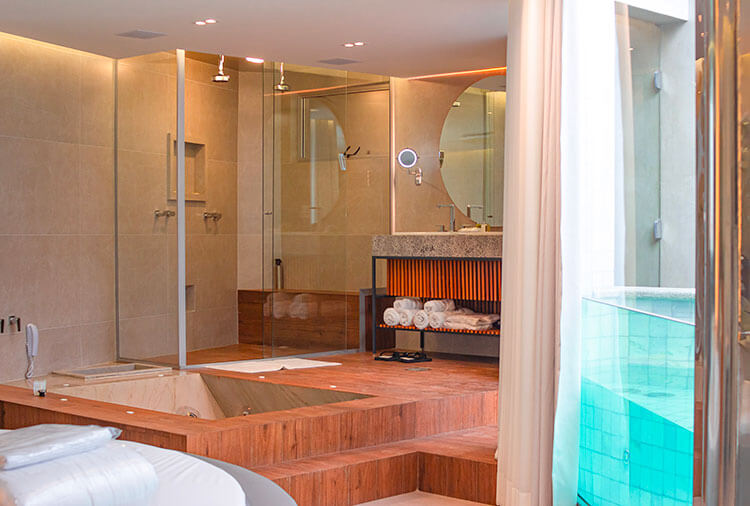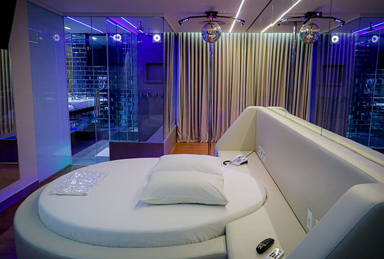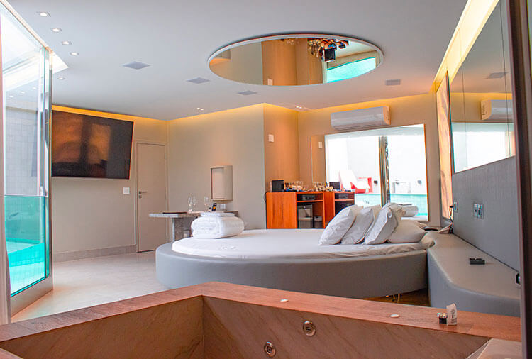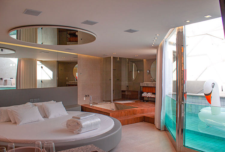 Destaque: a suíte Topázio Imperial oferece um ambiente clean e moderno, com piscina separada do quarto por uma parede de vidro, proporcionando uma experiência diferenciada e marcante