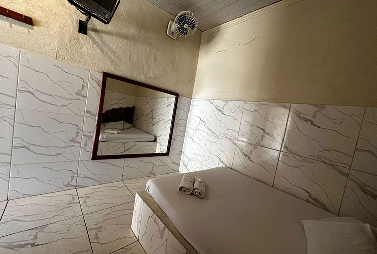 Suítes equipados com: ducha, ventilador de teto, garagem privativa, TV com canal erótico