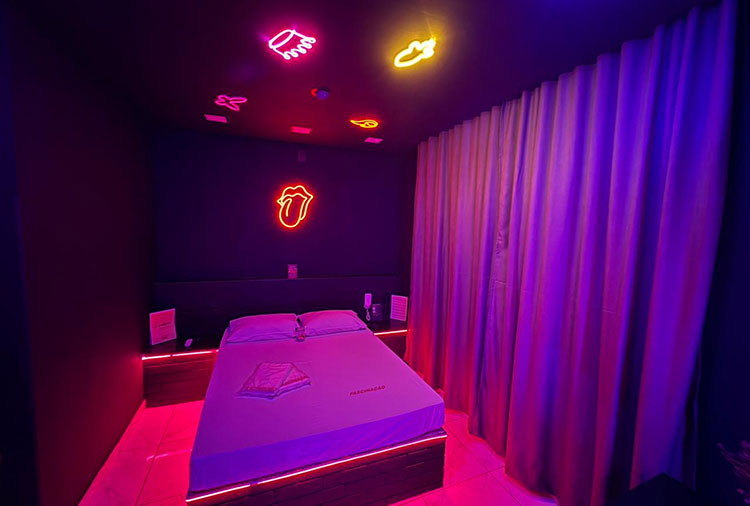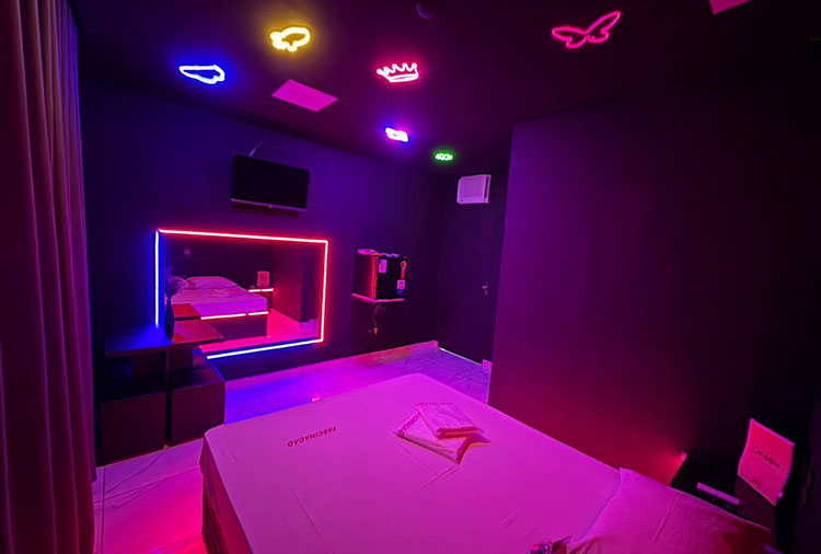 Destaque: A Suíte Com Ar conta com espelho na parede, ar-condicionado e iluminação especial, proporcionando mais conforto e criando o ambiente ideal para tornar sua noite ainda mais marcante