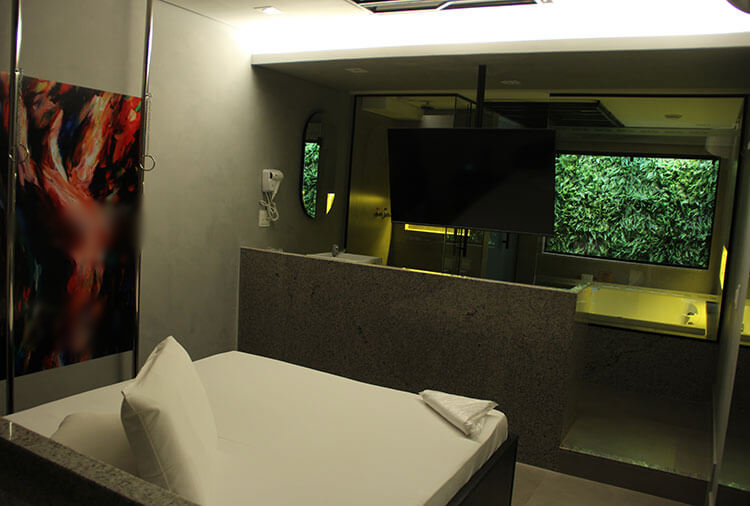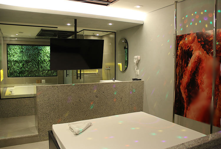 Piscina, sauna, hidromassagem, ar-condicionado, frigobar, ducha, garagem privativa, som, canal erótico, internet wi-fi, secador de cabelo, iluminação especial, quartos amplos e confortáveis.