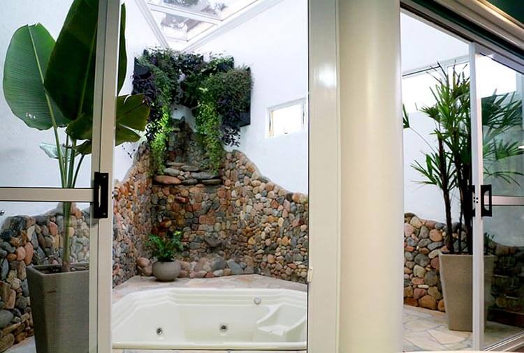 E mais: com hidromassagem sob teto de vidro, cascata em um jardim privativo e cadeira erótica, a suíte Amazônia oferece um ambiente ideal para tornar sua noite verdadeiramente memorável