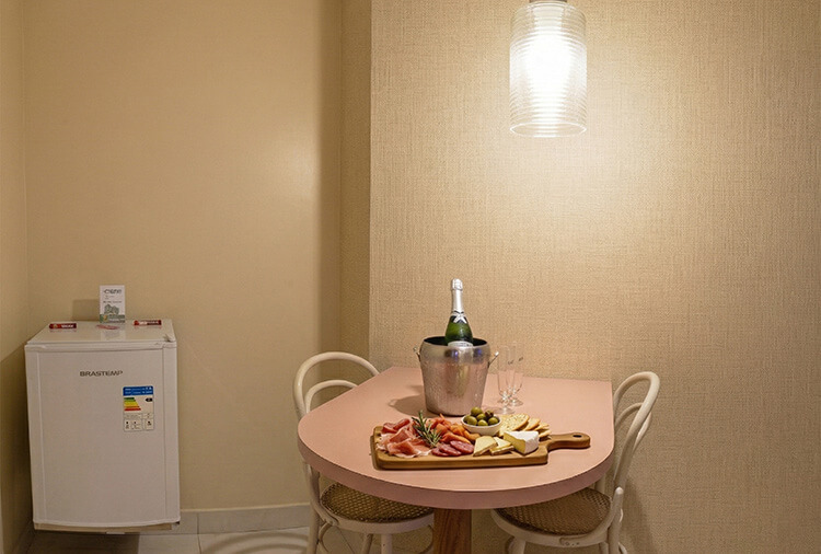 E mais: suíte Luxo oferece garagem privativa, frigobar e som