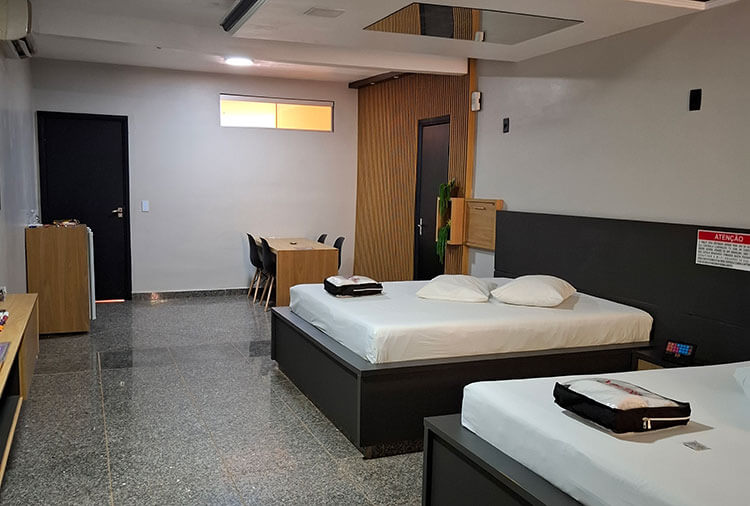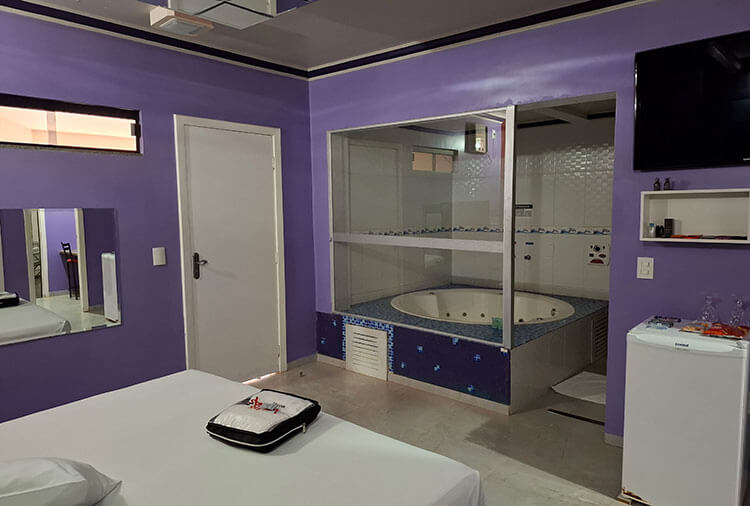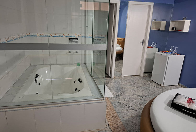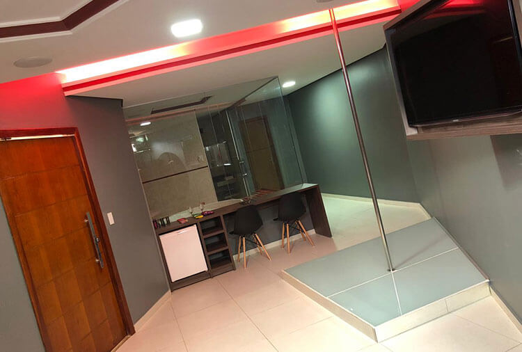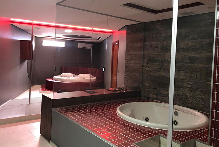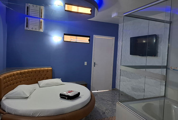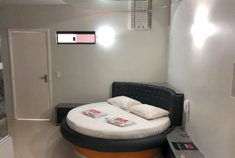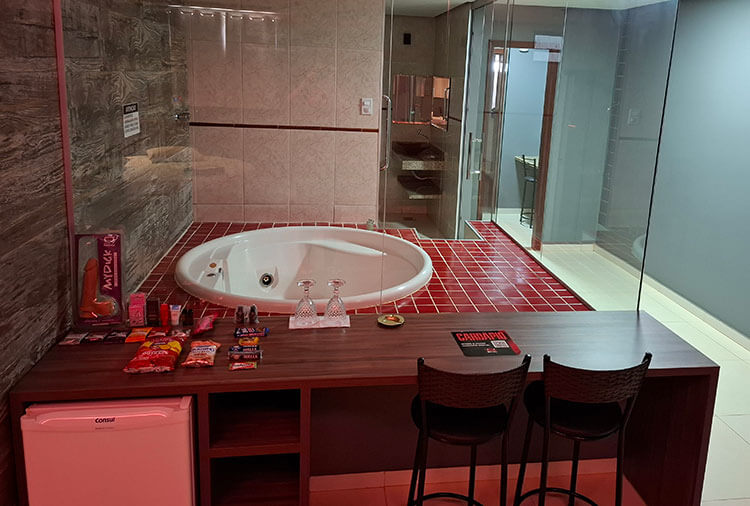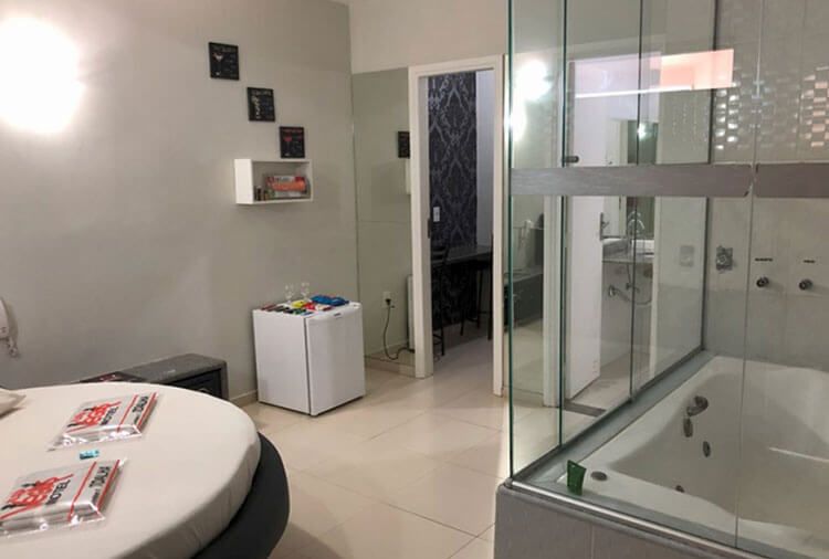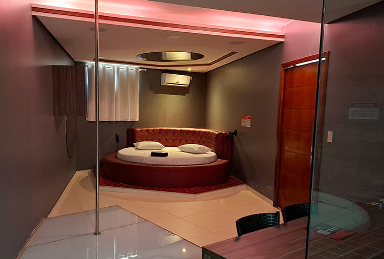 E mais: Na Suíte Presidencial, você encontra uma cama redonda king size, hidromassagem e pole dance, proporcionando diversão e momentos únicos