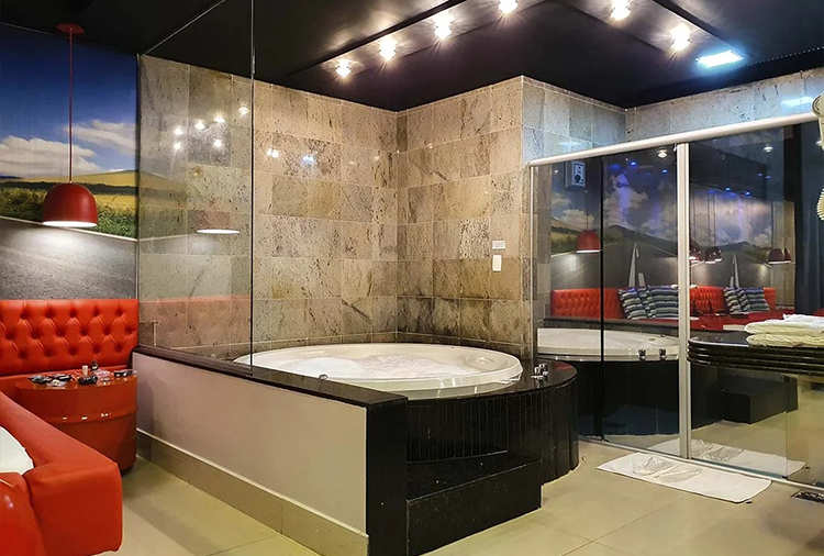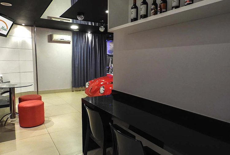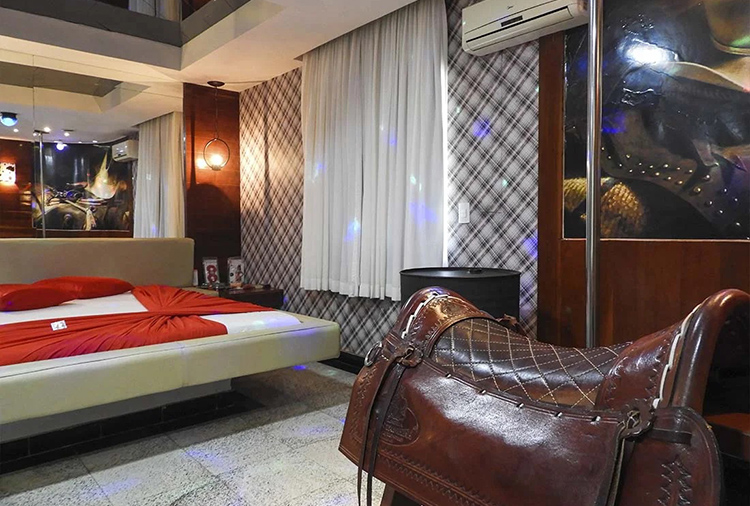 E mais: suítes Temáticas como Cowboy, Drive-in, Policial entre outras são equipadas com sauna, hidro, pista de dança, pole dance e iluminação especial. Já a suíte Encanto conta com cadeira erótica.