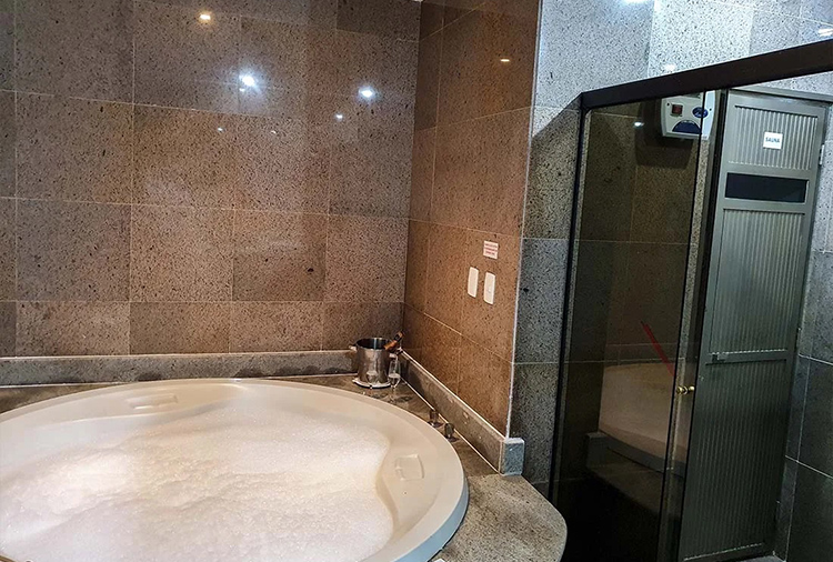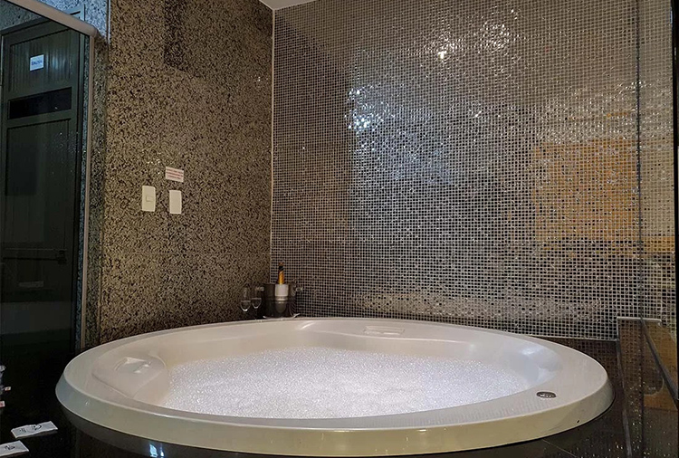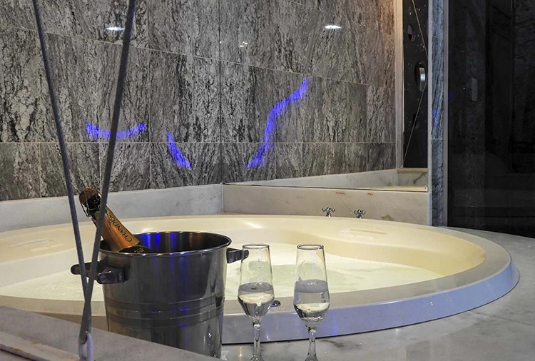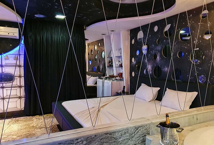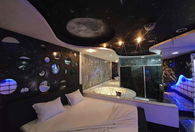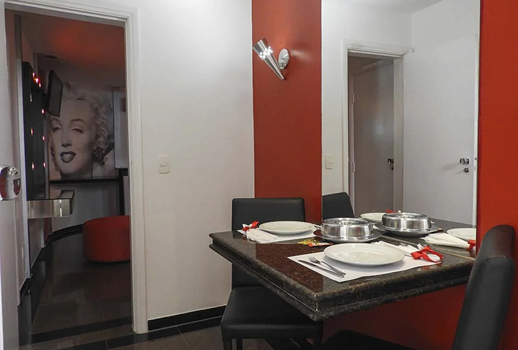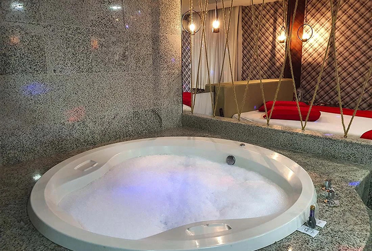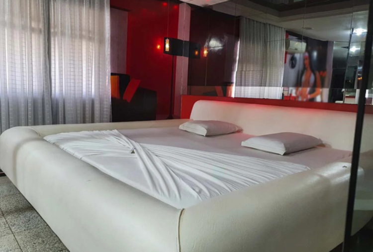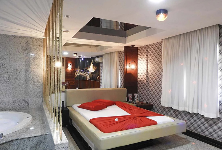 Destaque: com o nome do motel, a suíte Ame Mais é ideal para festas, pois conta com pista de dança e iluminação especial, além de sauna a vapor e spa