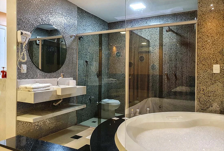 Equipadas com: ar-condicionado, secador de cabelo, TV com canal erótico, som, frigobar e garagem privativa.