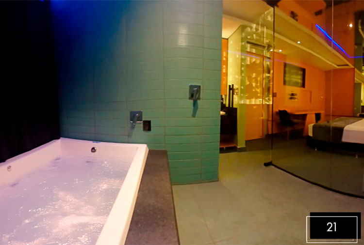 Para quem está em busca de ainda mais diversão, a principal suíte do motel, Club Pool, duplex, é equipada com hidromassagem, piscina térmica, sauna, 2 duchas duplas, cama box super king e espaço gourmet com churrasqueira.