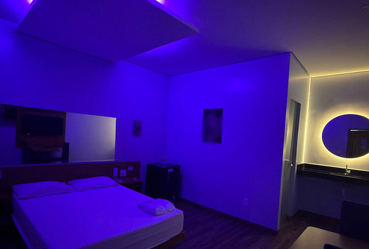 Destaque: suíte Elegance que possui decoração clean, ar-condicionado, espelho na parede, TV e iluminação especial. Garantindo o essencial para uma boa experiência!