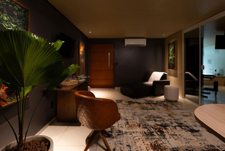 E mais: opções com cadeira erótica e hidromassagem. Suíte Garden possui decoração especial. Suíte Lounge Pool conta com sauna e piscina com hidro aquecida
