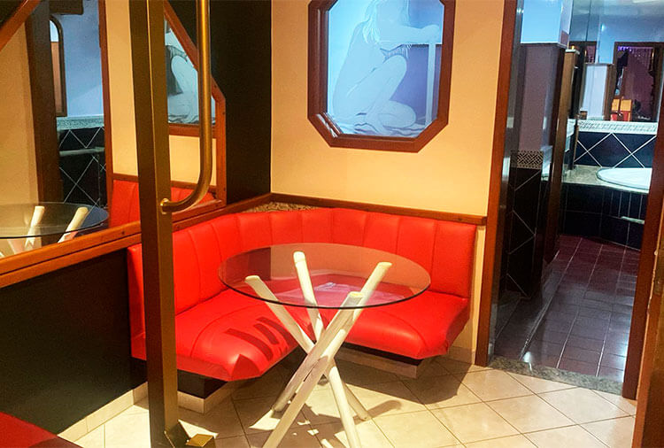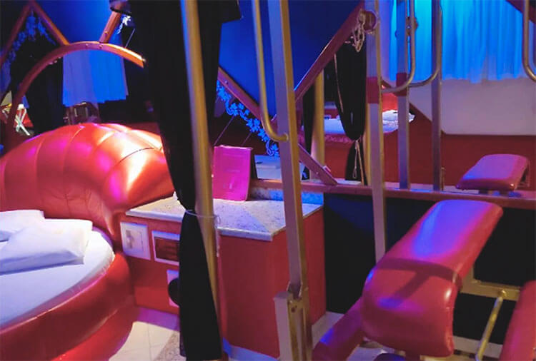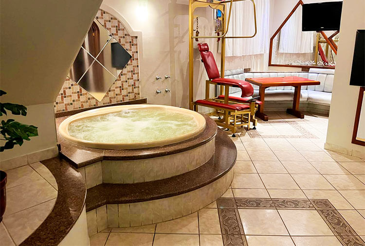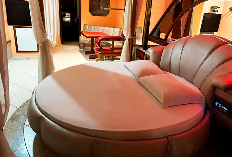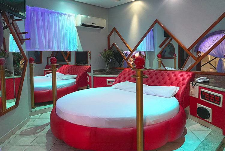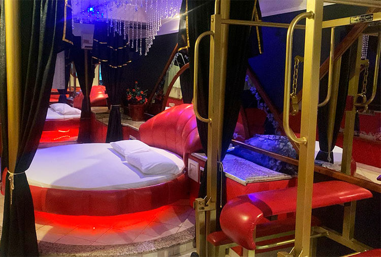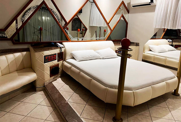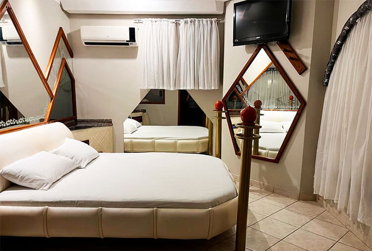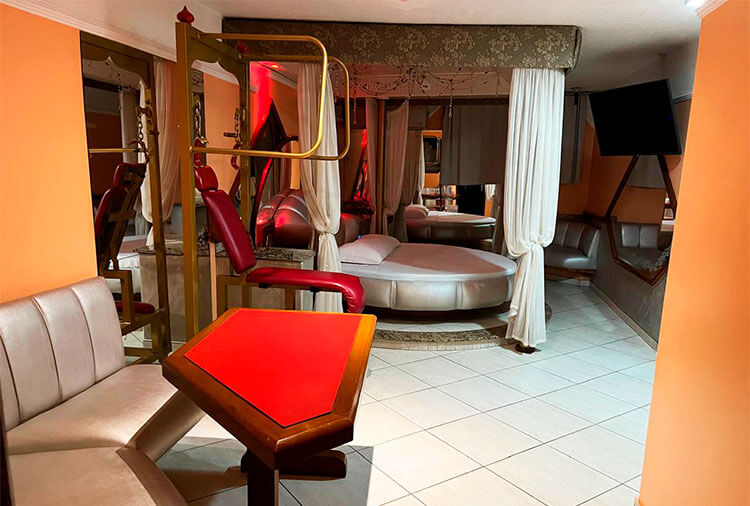Equipadas com: ar-condicionado, frigobar, ducha, internet wi-fi, garagem privativa, mesa para refeições, som, produtos sex shop e TV com canais eróticos.