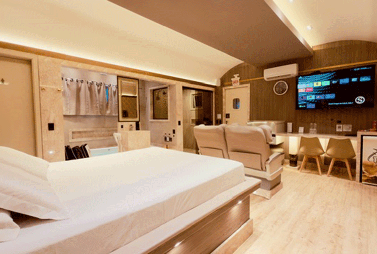 Equipadas com: ar-condicionado, chuveiro com aquecimento a gás, smart TV com canal erótico, frigobar, garagem privativa, internet Wi-Fi, secador de cabelo, som com entrada USB e Bluetooth