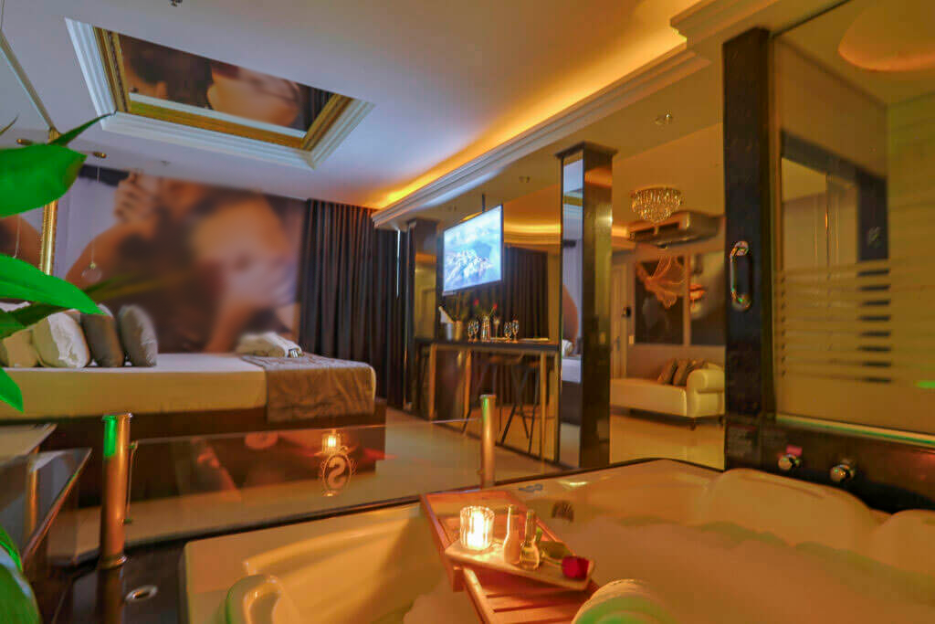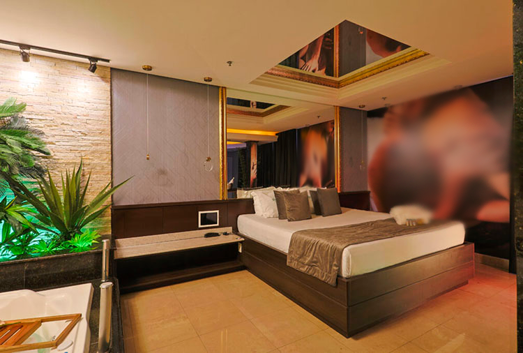 Equipadas com: Garagem privativa, TV com vários canais (eróticos), filmes e séries, frigobar, internet Wi-Fi, mesa para refeições e Alexa.