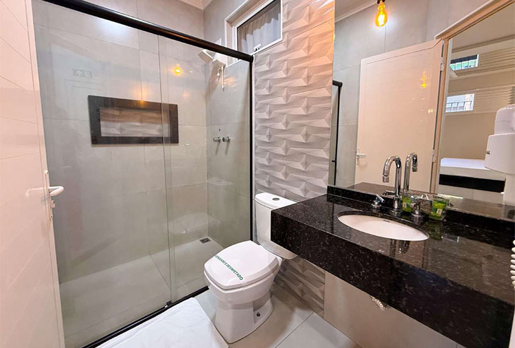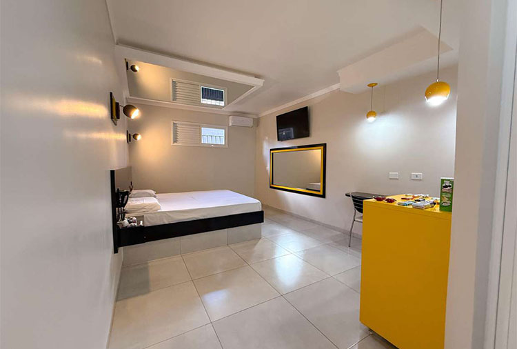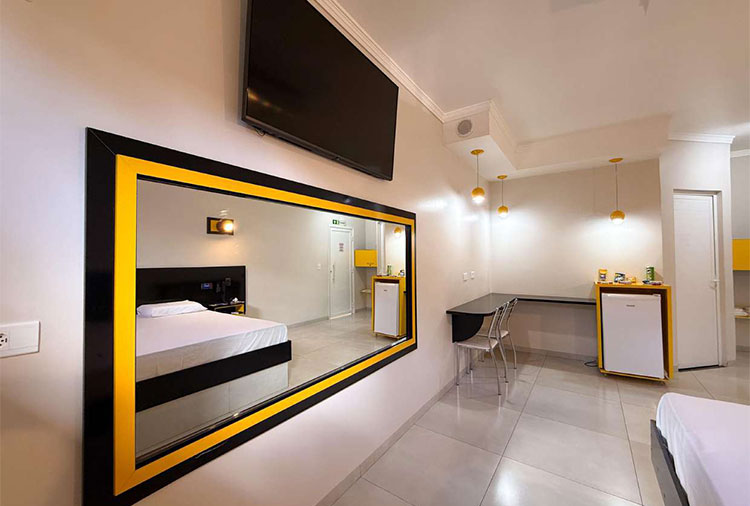 Suítes equipadas com: ar-condicionado, frigobar e TV
