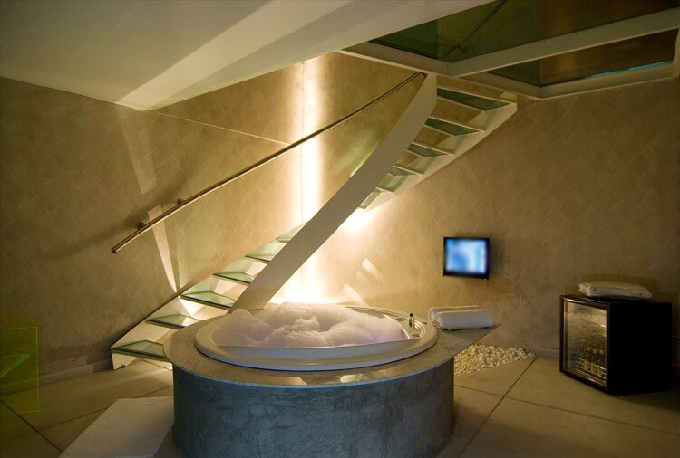 Destaque: suíte Loft Plus, com quatro camas iluminação especial, piscina ao ar livre com cascata e piscina de champanhe - uma experiência luxuosa e inesquecível