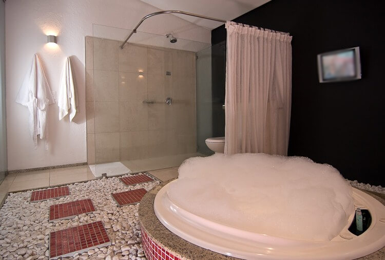 Equipadas com: ar-condicionado, TV com canal de vídeosex, hidromassagem, mini-system, cama king size, DVD e garagem privativa automática