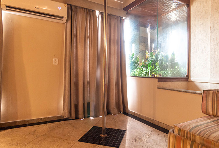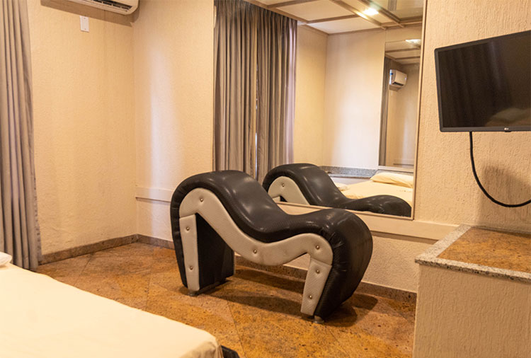 Suítes equipados com: ar-condicionado, garagem, 3 canais de cine prive, som estéreo e TV