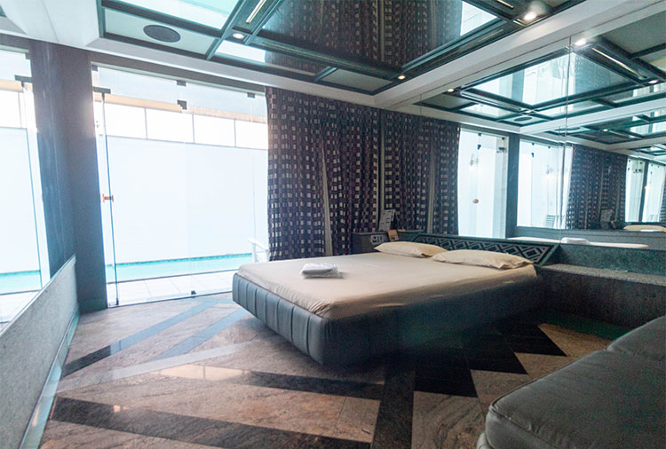 Destaque: a suíte Calèche conta com hidromassagem, piscina aquecida, pista de dança, sauna, teto solar e ar condicionado