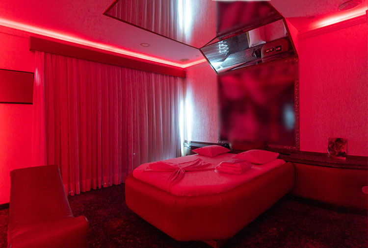 Suítes equipados com: ar-condicionado, frigobar, saleta para refeições, som e TV com canal erótico
