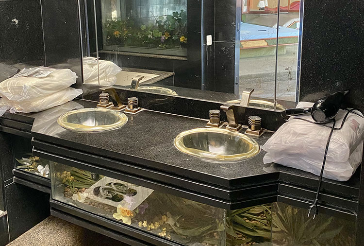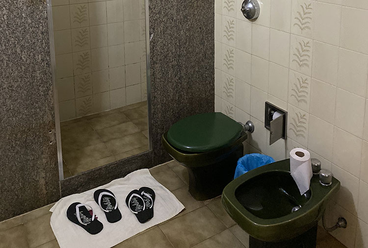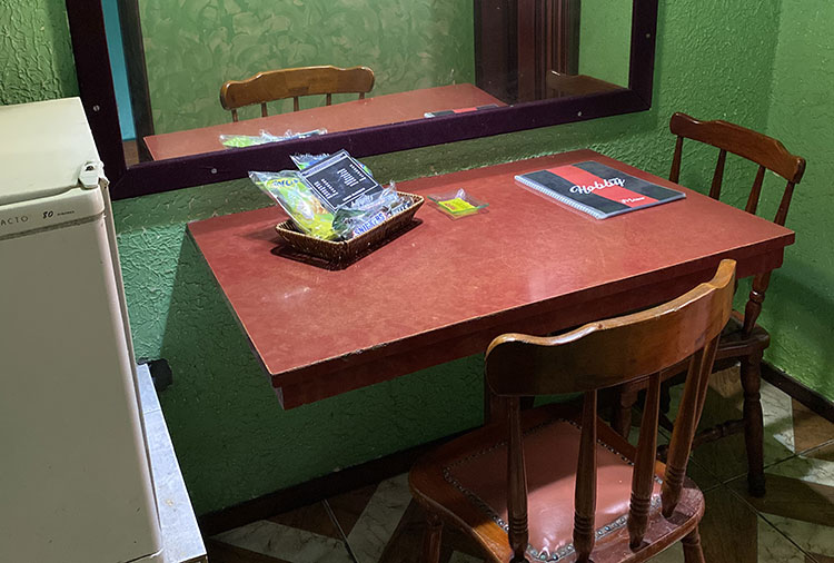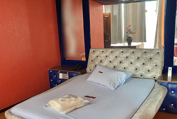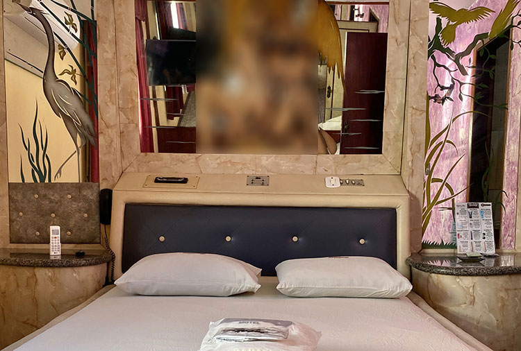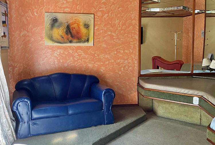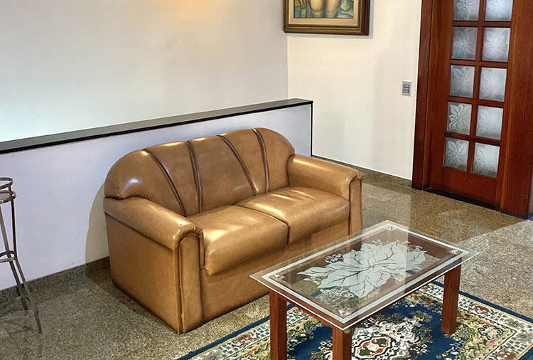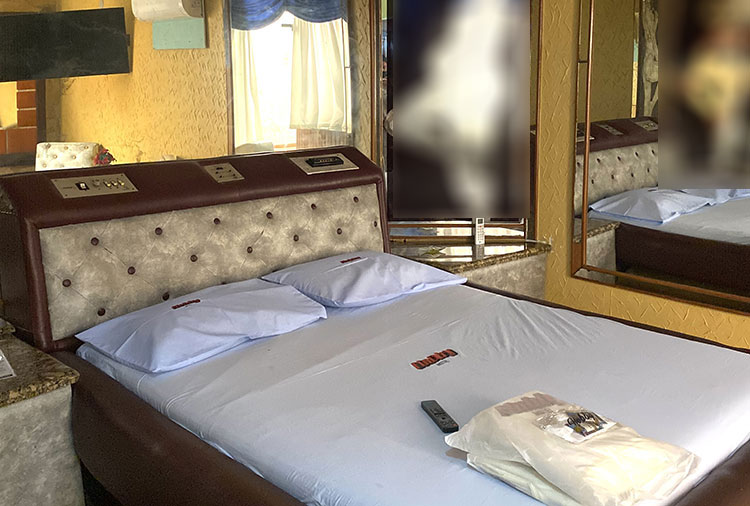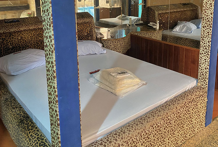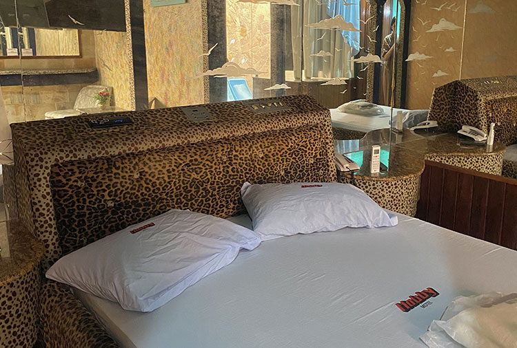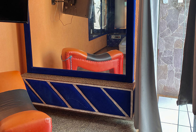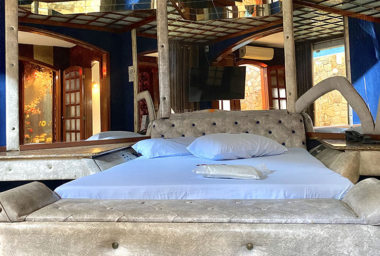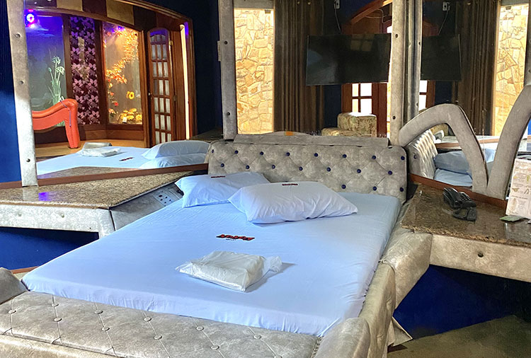 Suítes equipadas com: ar-condicionado, ducha, frigobar, som, internet wi-fi e TV com canal erótico