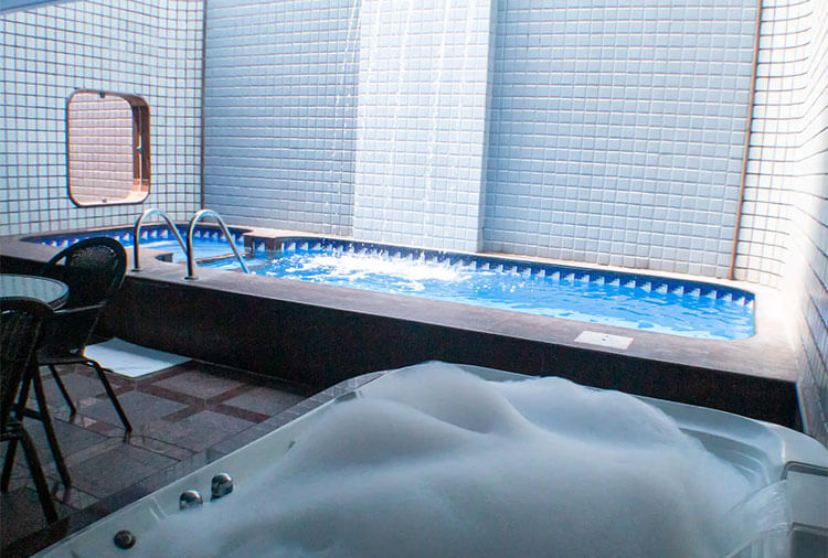Destaque: a Suíte Dreams oferece uma experiência única! Dispõe de piscina aquecida, hidro relaxante, pole dance e poltrona erótica.