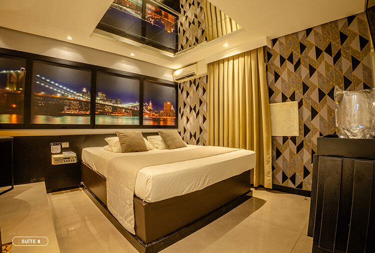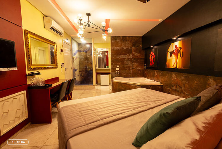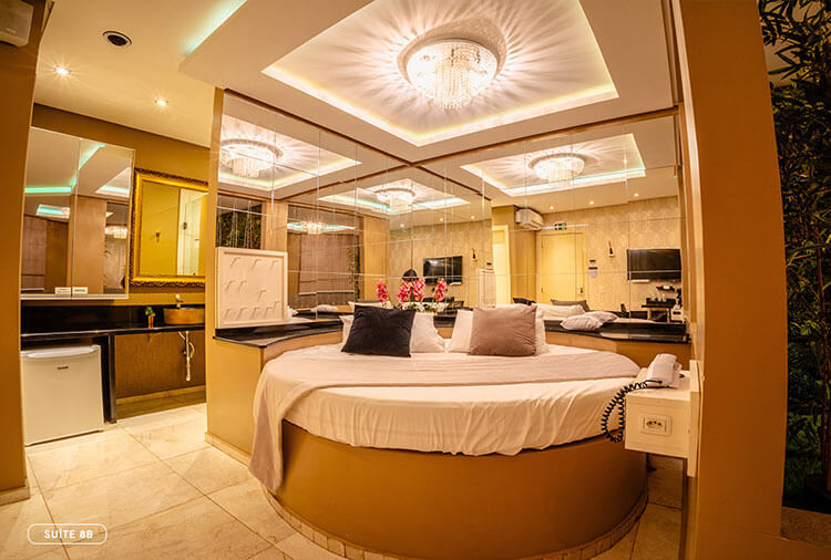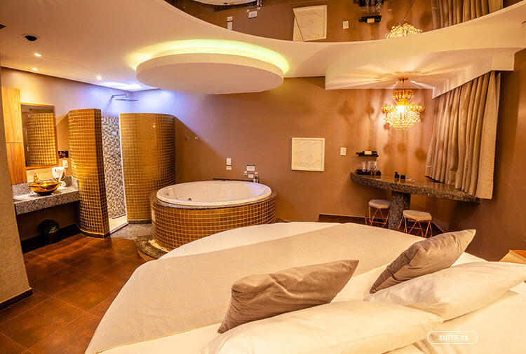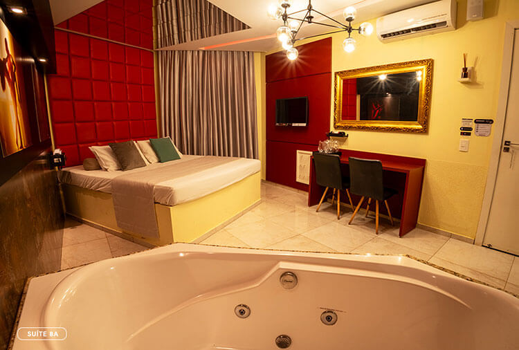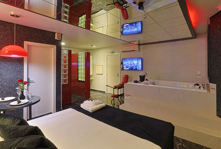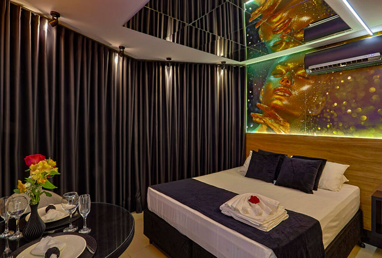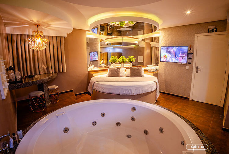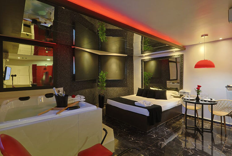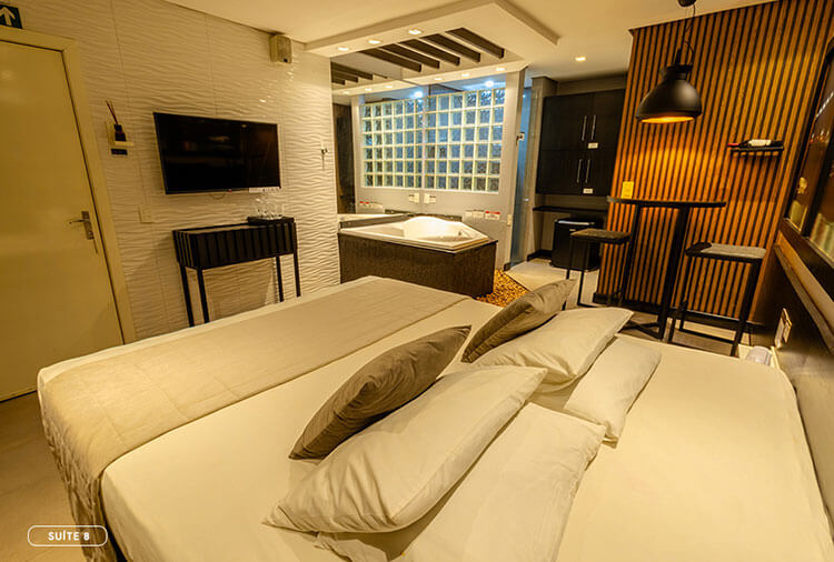 Equipadas com: ar-condicionado, Alexa, canais de som, garagem privativa, hidromassagem, internet wi-fi, secador de cabelo, automação por Alexa e TV com streaming e canais eróticos