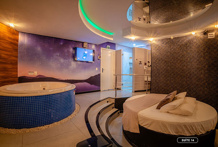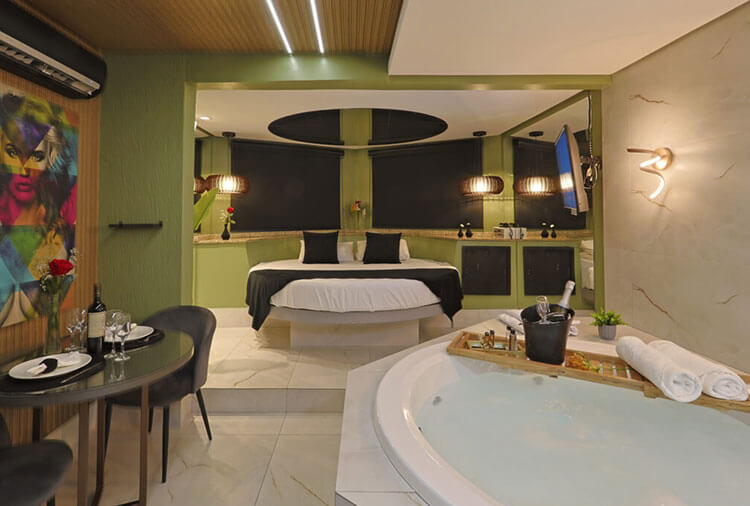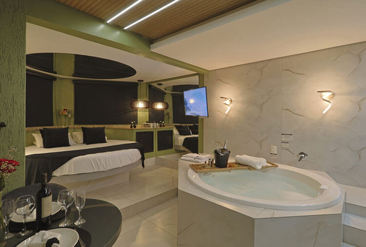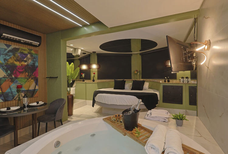 Equipadas com: ar-condicionado, canais de som, garagem privativa, hidromassagem, internet wi-fi, Netflix, secador de cabelo, spotify e TV com canais eróticos