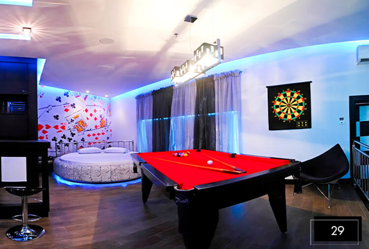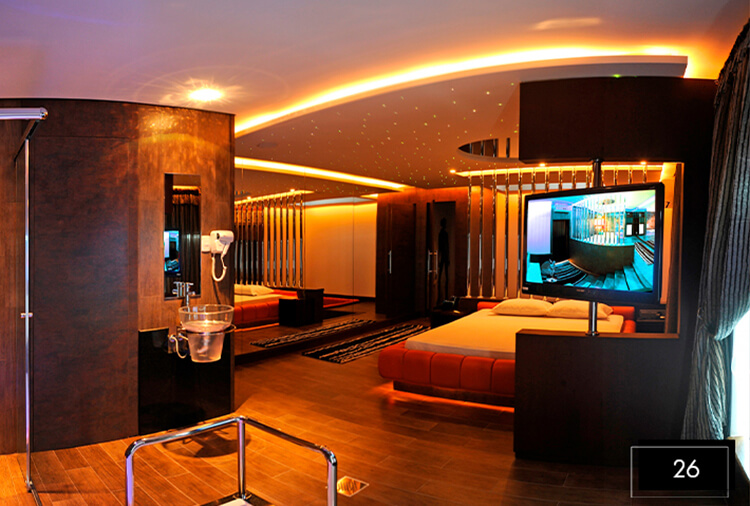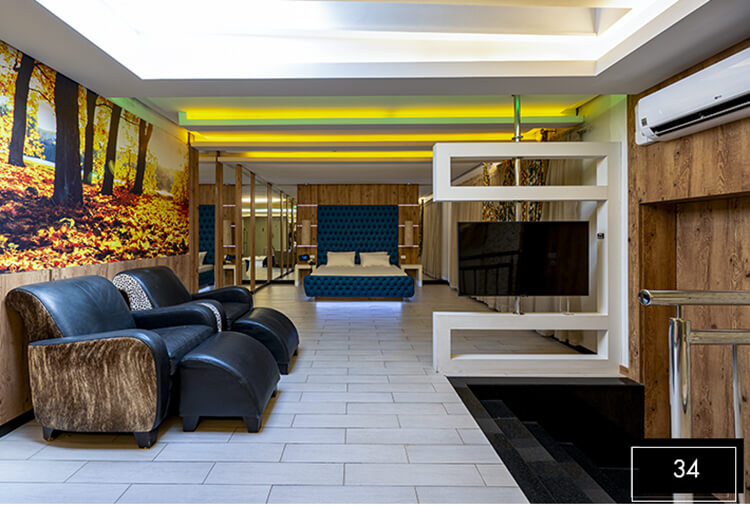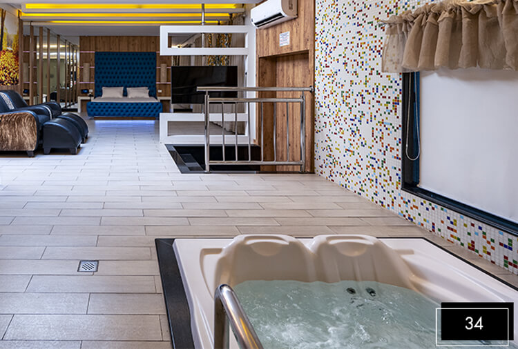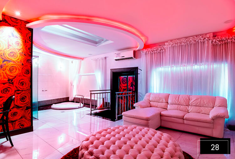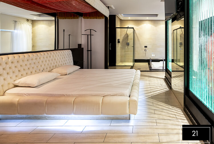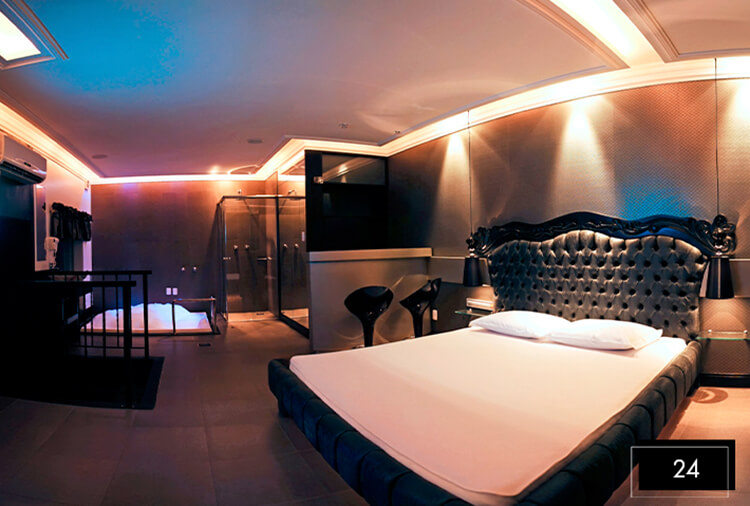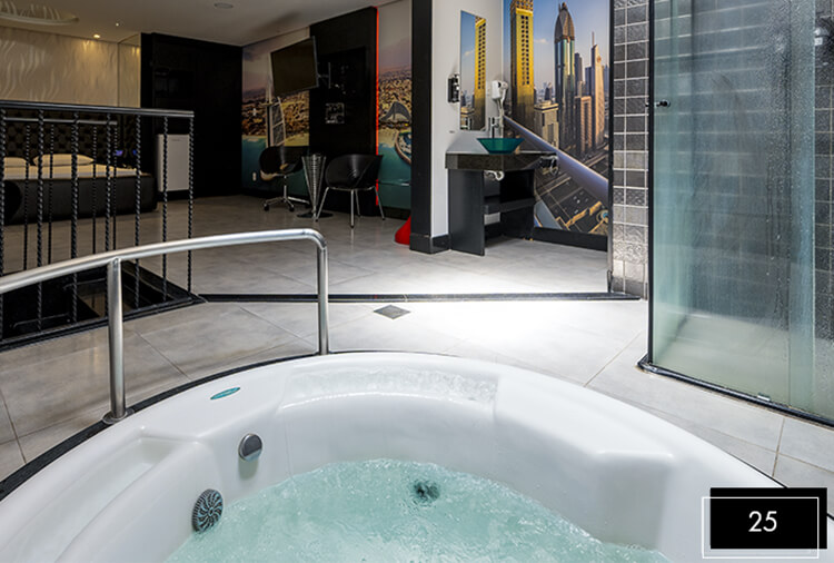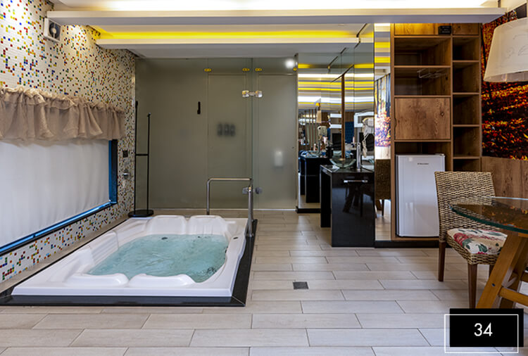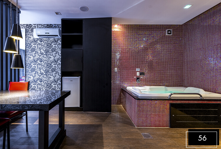 Destaque: a Suíte Acqua 32 integra luxo e lazer em um só ambiente. Conta com divã erótico, pole dance, mesa de sinuca, ampla hidromassagem, proporcionando uma experiência completa de conexão e relaxamento.