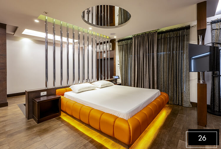 Suítes equipados com: ar-condicionado, frigobar, garagem privativa, piso aquecido, secador de cabelo, TV