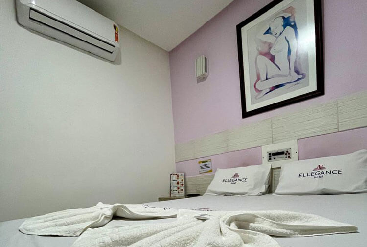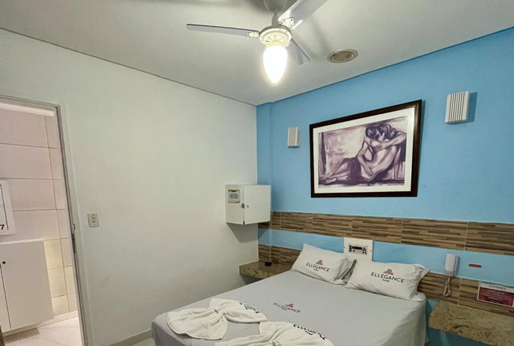 Suítes equipadas com: ar-condicionado, internet Wi-Fi, som e TV com canal erótico