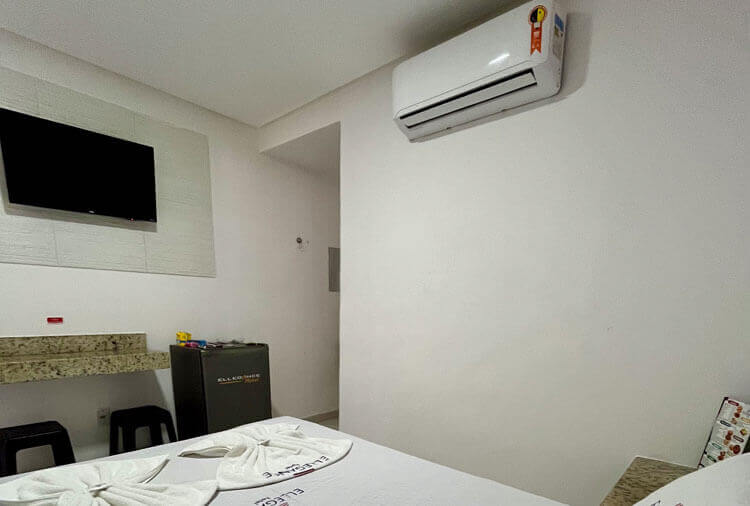Destaque: para a suíte Super Luxo que além dos itens básicos, ainda é equipada com frigobar. Essa acomodação ainda oferece um ambiente aconchegante e bem estruturado para lhe trazer todo conforto merecido a cada estada.