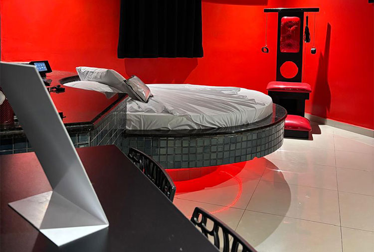 E mais: a Suíte Hidro Digital é ampla e elegante, com hidromassagem dupla, iluminação especial, teto espelhado e TV de 50 polegadas, perfeita para relaxar com estilo