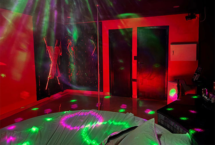 Suítes equipadas com: ar-condicionado, ducha, frigobar, garagem privativa, internet wi-fi, saleta para refeições, som e TV com canal erótico