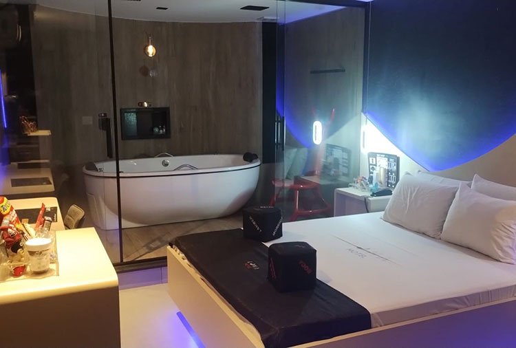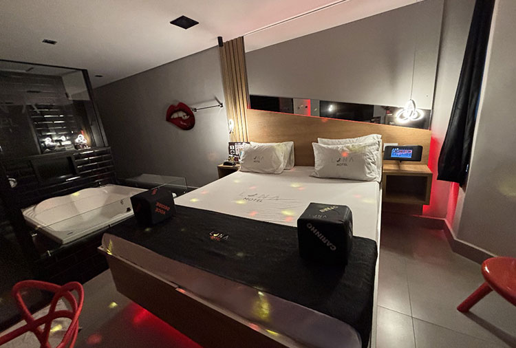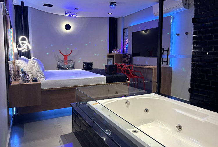 Destaque: a suíte Luna Erótica, conta com decoração temática e inclui itens como, X-Sado, guilhotina, cela, além de contar com uma grande hidromassagem