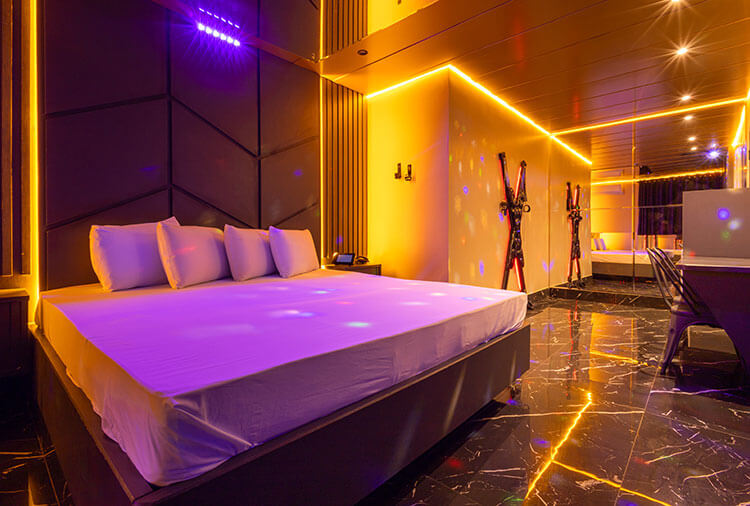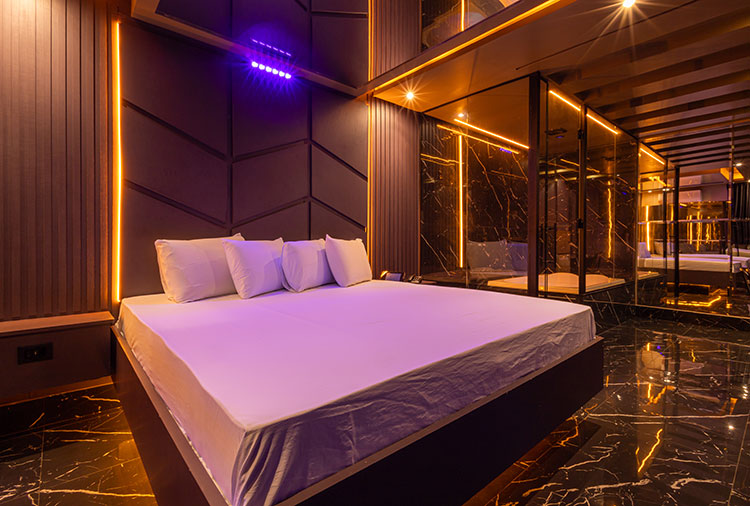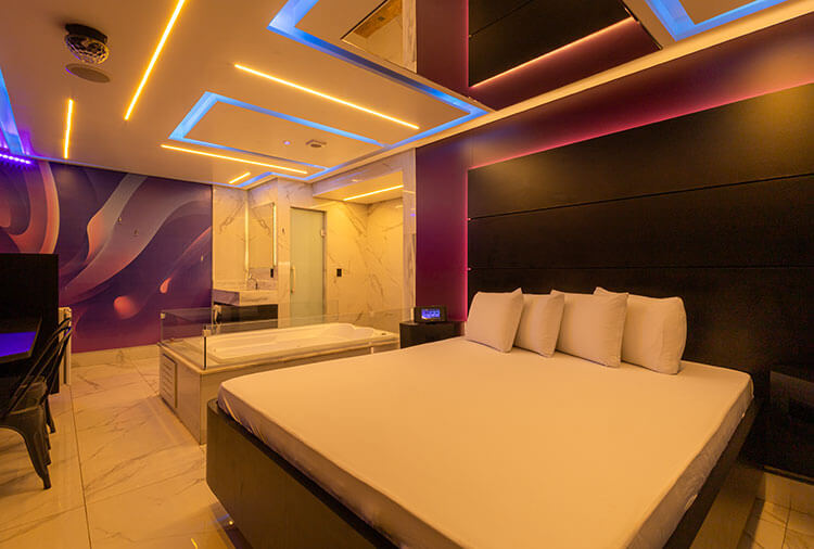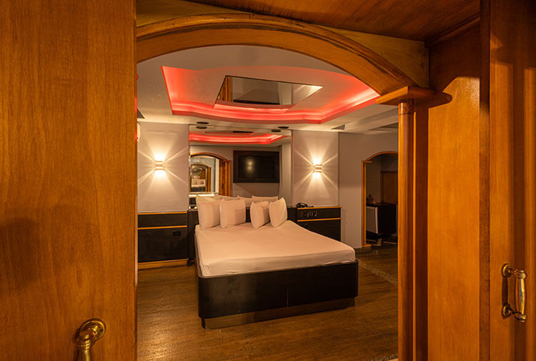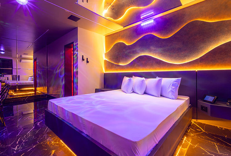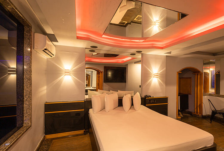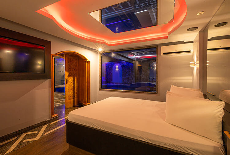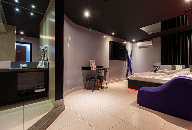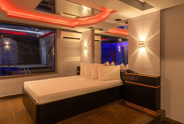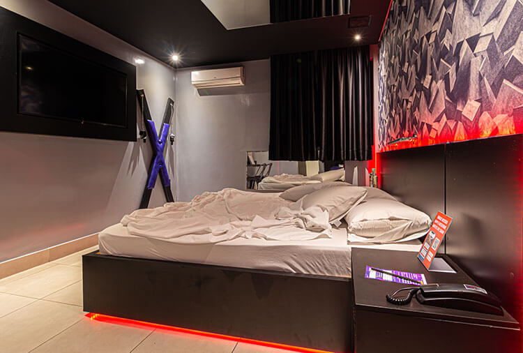 Equipadas com: ar-condicionado, ducha, frigobar, garagem privativa, internet Wi-Fi, secador de cabelo, som e TV com canal erótico