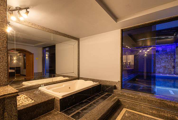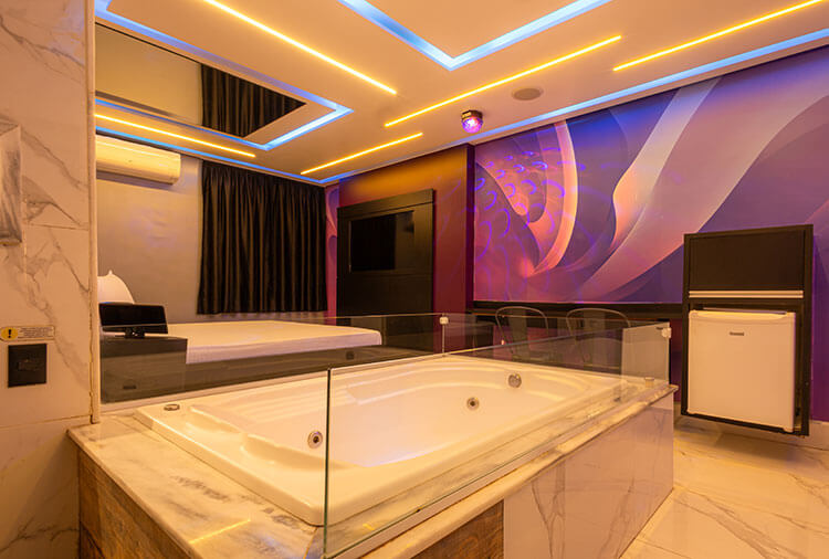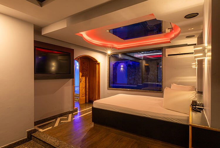 E mais: a suíte Erótica Duplex Hidro que conta com TV 50”, cama queen e uma espaçosa hidromassagem.