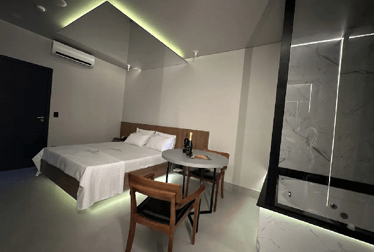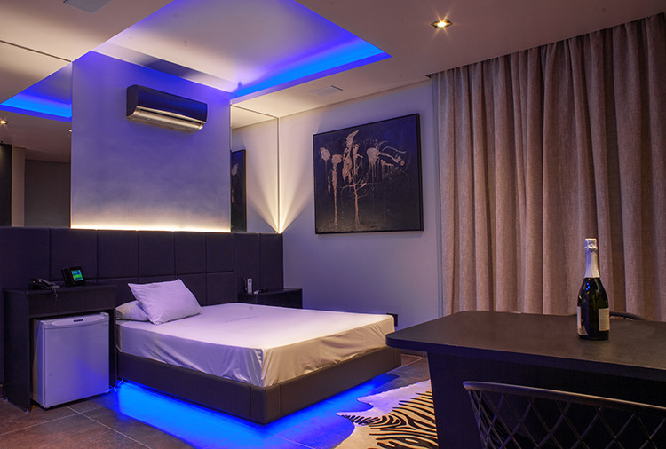 Equipadas com: TV com canal erótico, ar-condicionado, som, frigobar, internet Wi-Fi e secador de cabelo