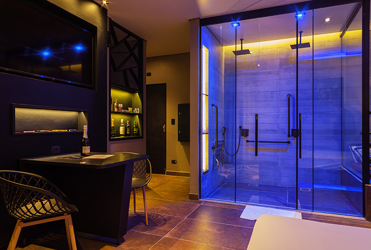 E mais: única com capacidade para receber dois carros, a suíte Nefertari tem hidromassagem com iluminação LED, além de TV smart e 3D. Há ainda opção com ofurô (suíte Kadesh)