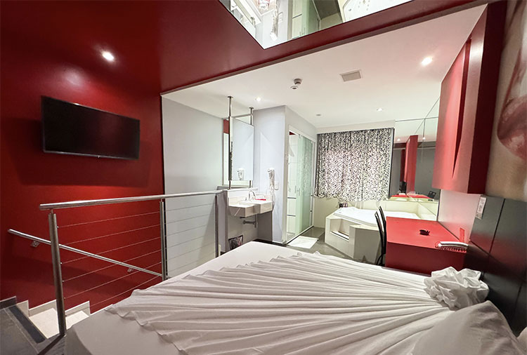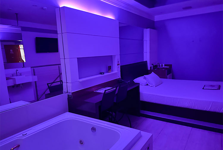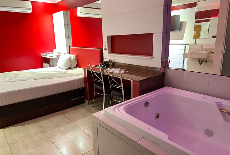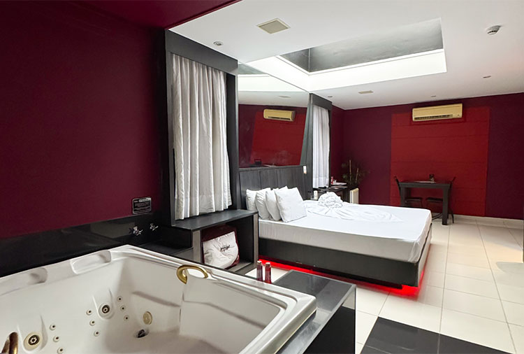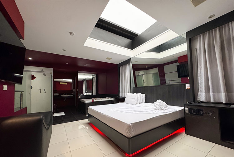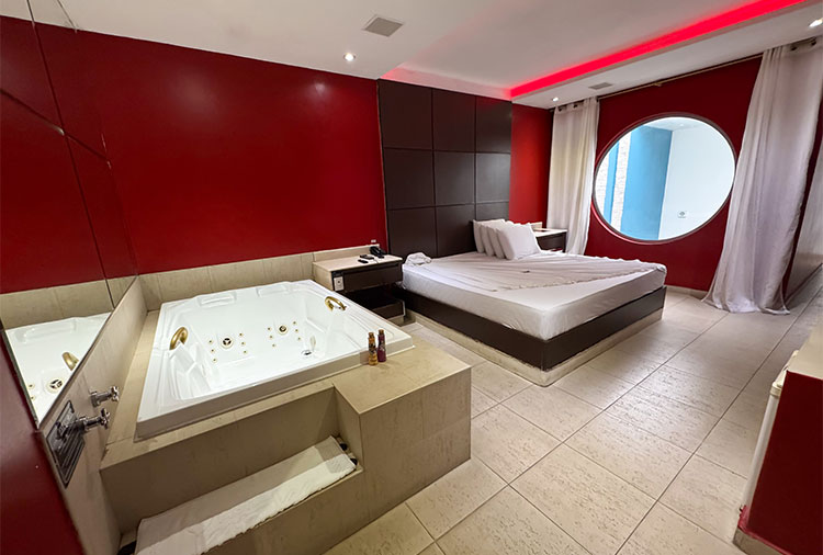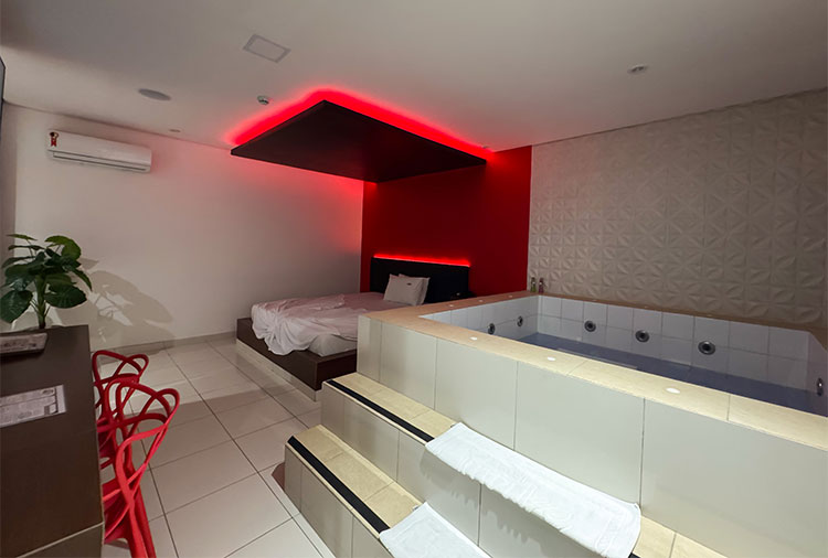 Destaque: a suíte Impulse é puro requinte, com piscina aquecida, hidromassagem dupla, teto solar, lareira e pista de dança, o cenário ideal para uma experiência única!