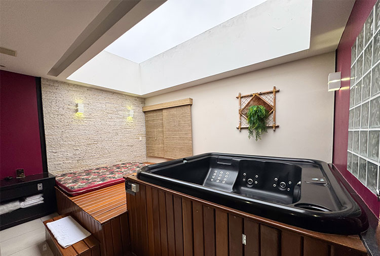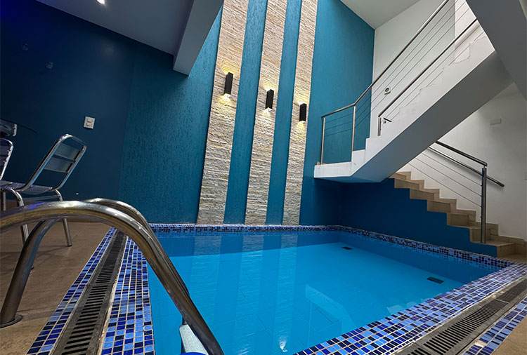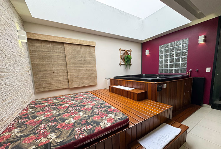 E mais: na suíte Absolut, o conforto e o luxo se encontram em um espaço amplo com piscina aquecida, hidro e iluminação envolvente, perfeita para curtir sem pressa