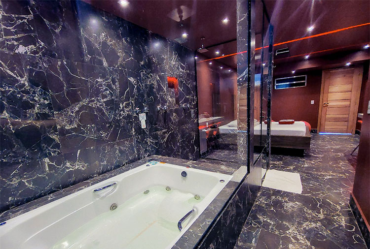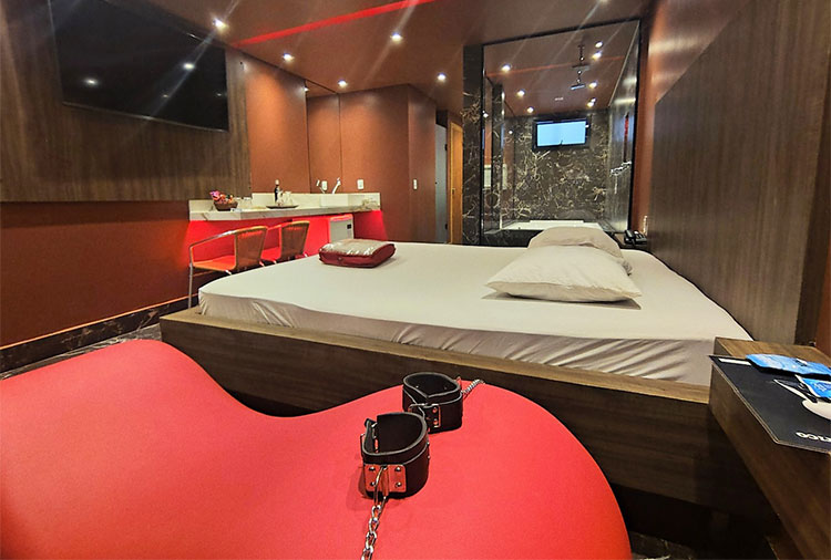 Destaque: fica por conta da suíte Delizie, que, além dos itens básicos como ar-condicionado, mesa para refeições e espelho no teto, oferece também puff erótico, lareira e sauna, garantindo uma experiência completa
