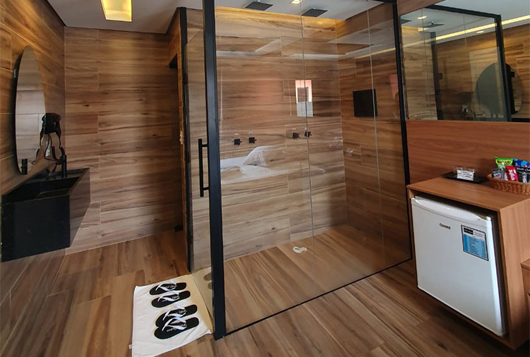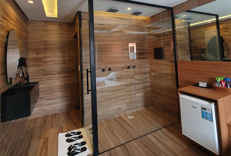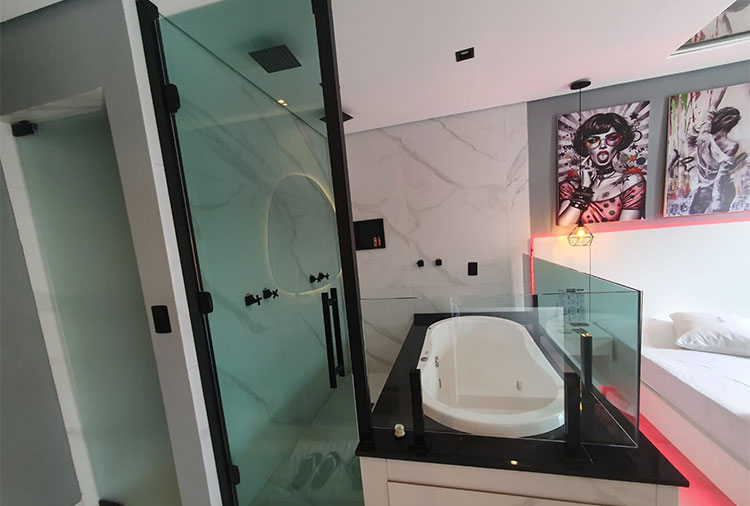 E mais: a suíte Premium possui um ambiente moderno e mais descontraído, ideal para quem deseja relaxar em sua hidro ofurô