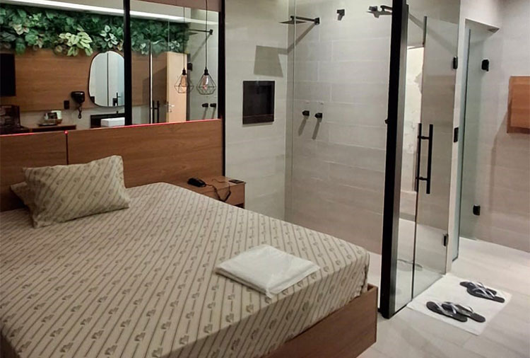 Destaque: para a Suíte Diamante, que impressiona na hora: hidromassagem ampla, clima envolvente e um ambiente feito para viver momentos intensos