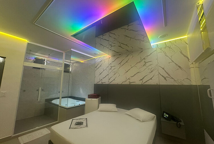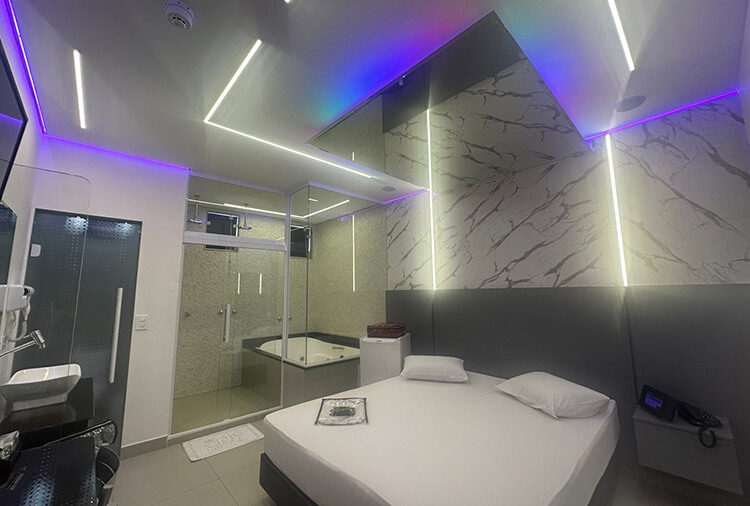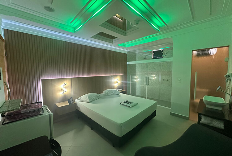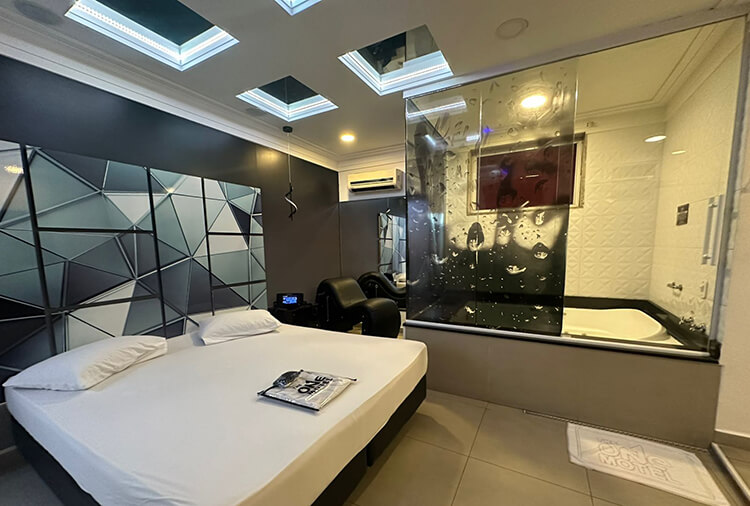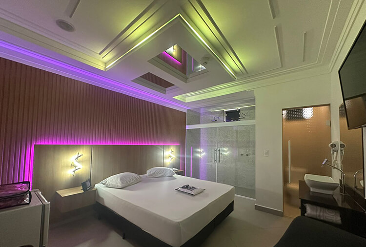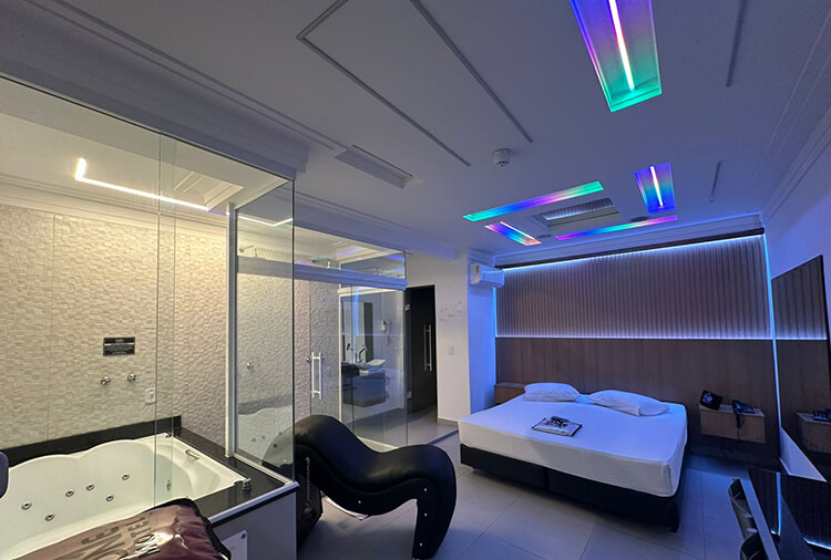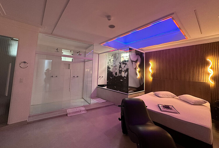 Equipadas com: ar-condicionado, TV LED 42'' com canal erótico, ducha dupla, frigobar e secador de cabelo