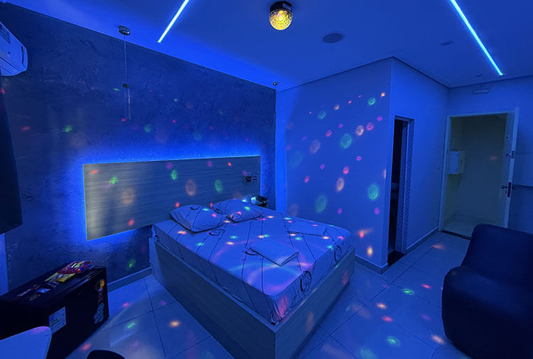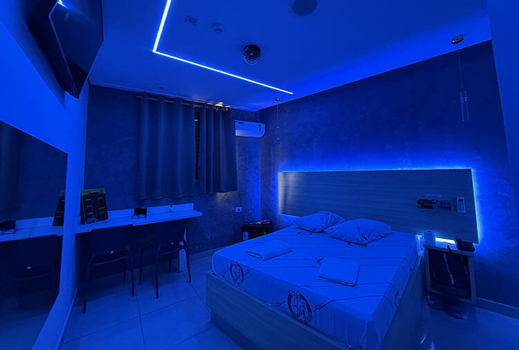 Destaque: descubra o prazer em alto nível na nova Suíte Acqua Luxo, um espaço moderno e elegante, com hidromassagem relaxante, espelho em frente à cama, poltrona erótica, saleta para refeições, iluminação especial e som com Bluetooth. Ideal para quem busca conforto e sofisticação em todos os detalhes
