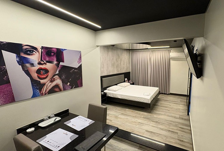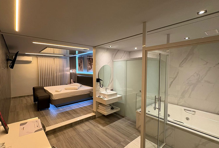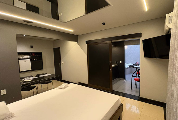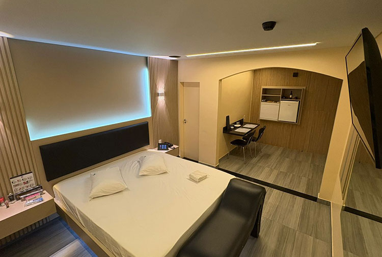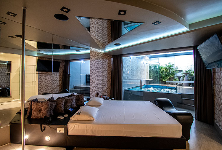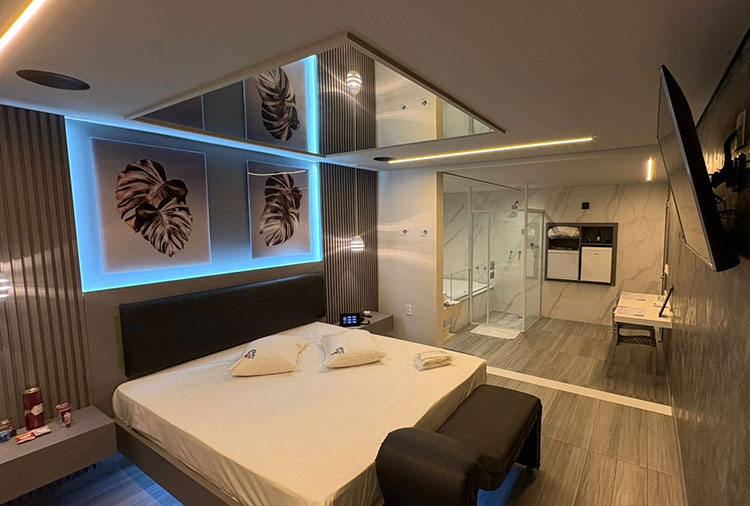 Equipadas com: ar-condicionado, TV com canal erótico, ducha, frigobar, internet Wi-Fi, som e garagem automática