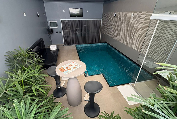 E mais: na suíte Mansão, equipada com cadeira erótica, sauna, home theater, piscina aquecida, spa, mesa de bilhar e spa, também é possível realizar festas particulares. Já para os que preferem a privacidade a dois, mas não abrem mão da sofisticação, a suíte que leva o nome do motel é perfeita, pois reúne hidromassagem, sauna, piscina aquecida e teto solar, além de decoração luxuosa. Há ainda opções mais simples de suítes com piscina, hidromassagem e sauna, além de quarto com ofurô