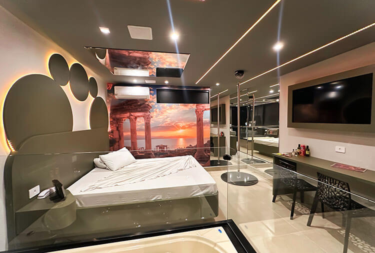 Equipadas com: ar condicionado split, smart tv, canais eróticos, garagem privativa automática, atendimento autonav