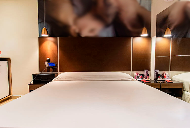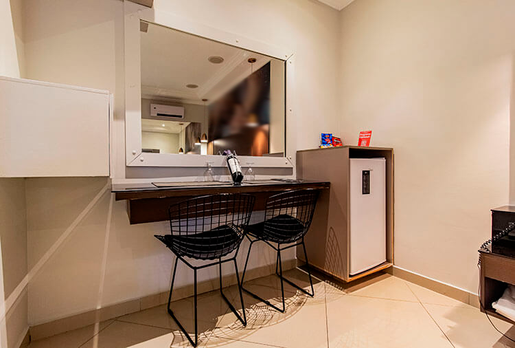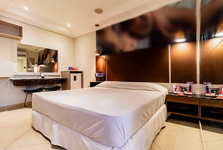 Suítes equipados com: ar-condicionado, canal erótico, ducha, secador de cabelo, som e TV