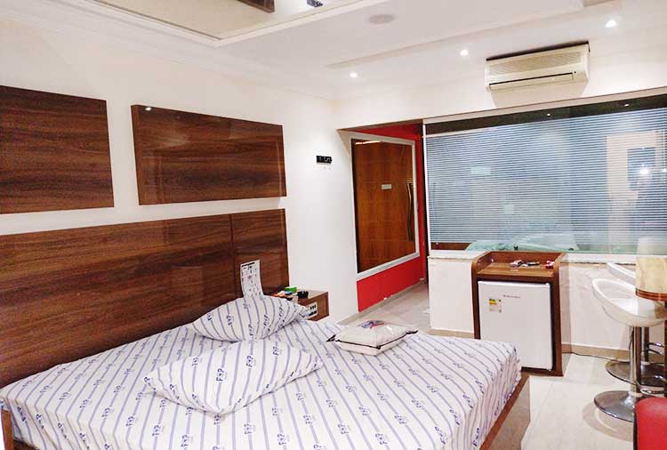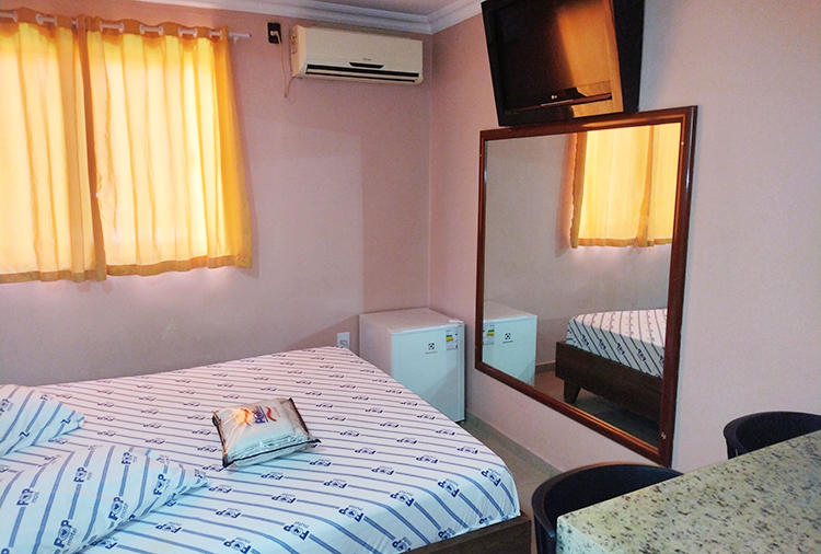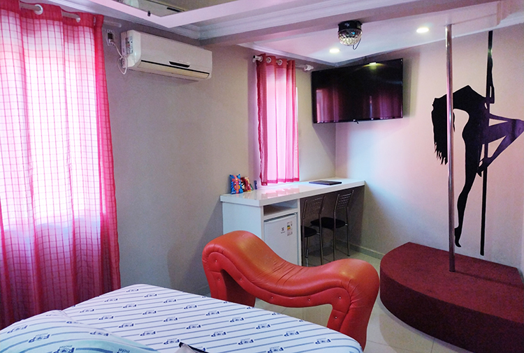 Equipadas com: ar-condicionado split, frigobar, garagem privativa automática, som e TV com canais eróticos.