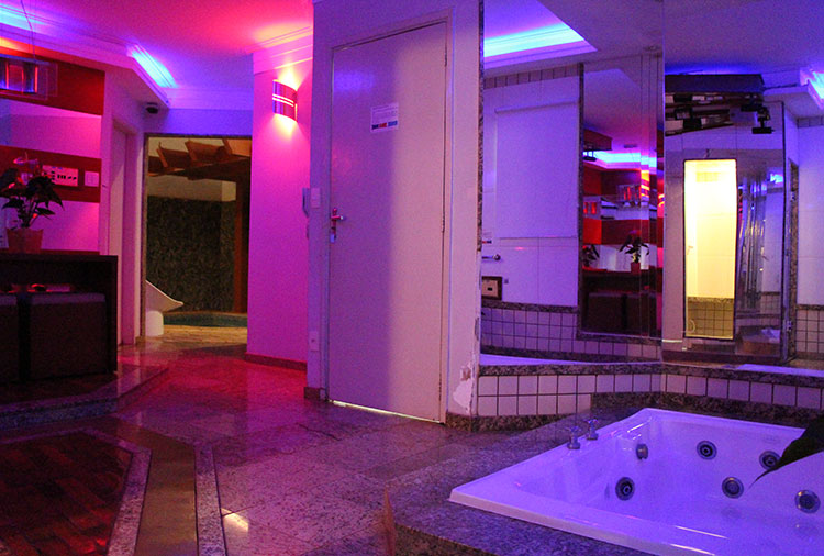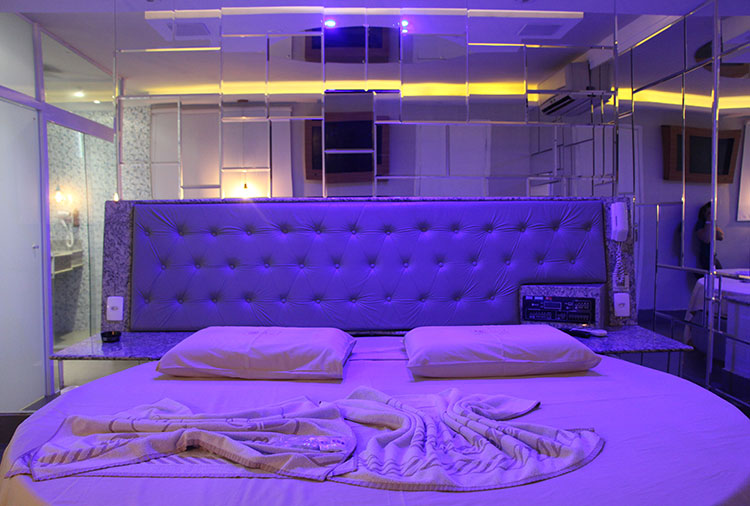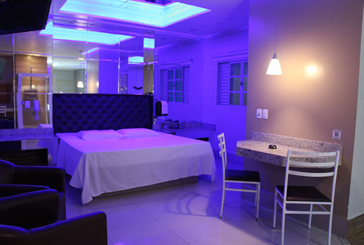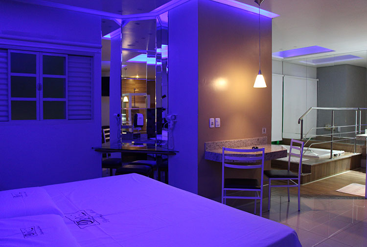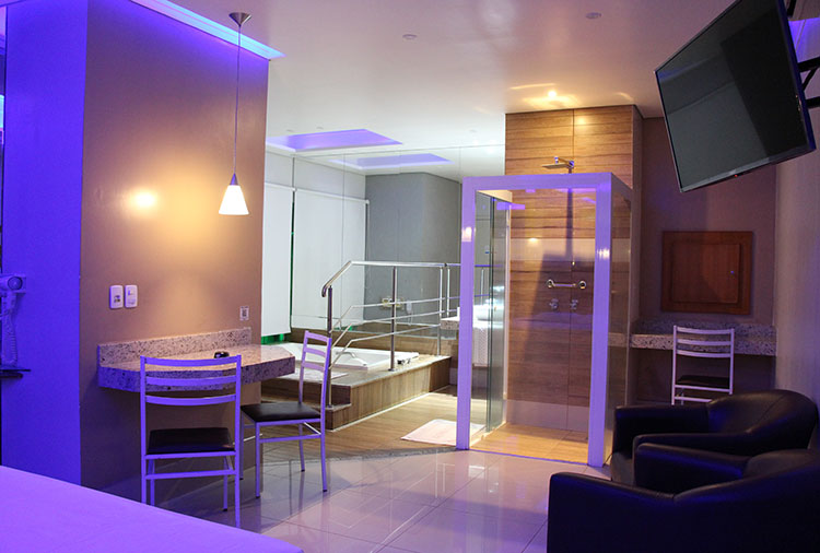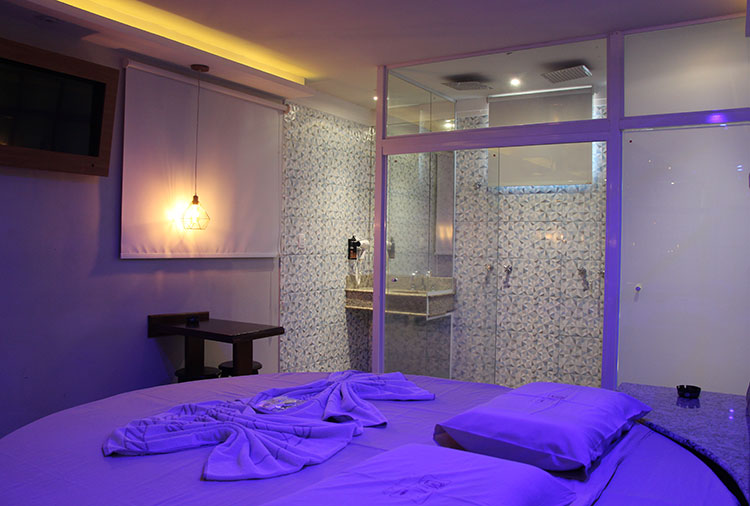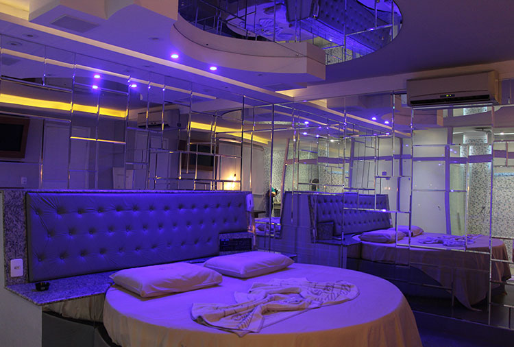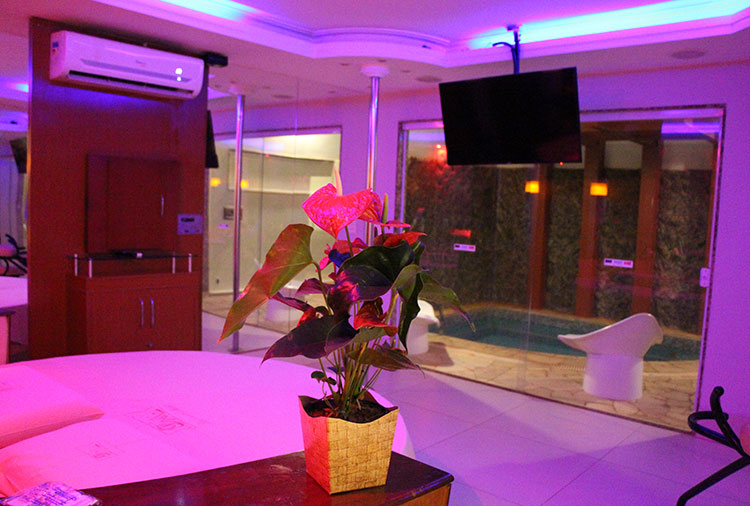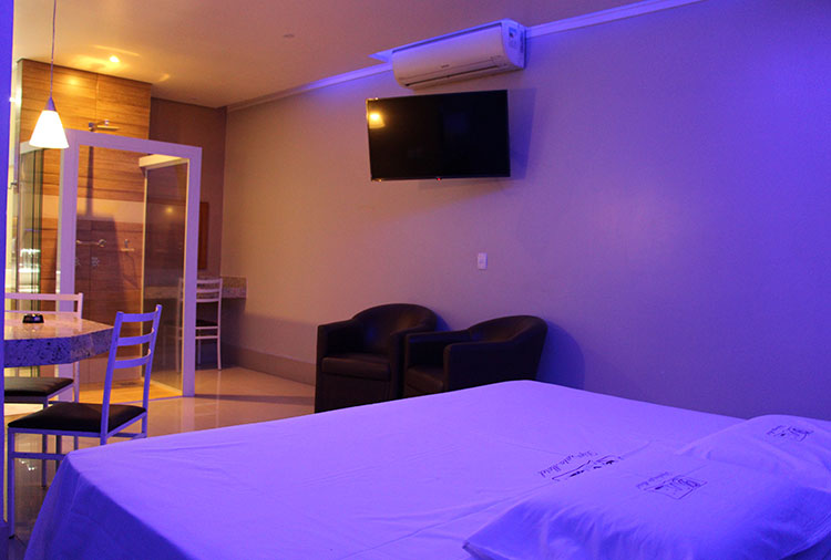 Suítes equipados com: ar-condicionado, garagem privativa, som e TV com canal erótico